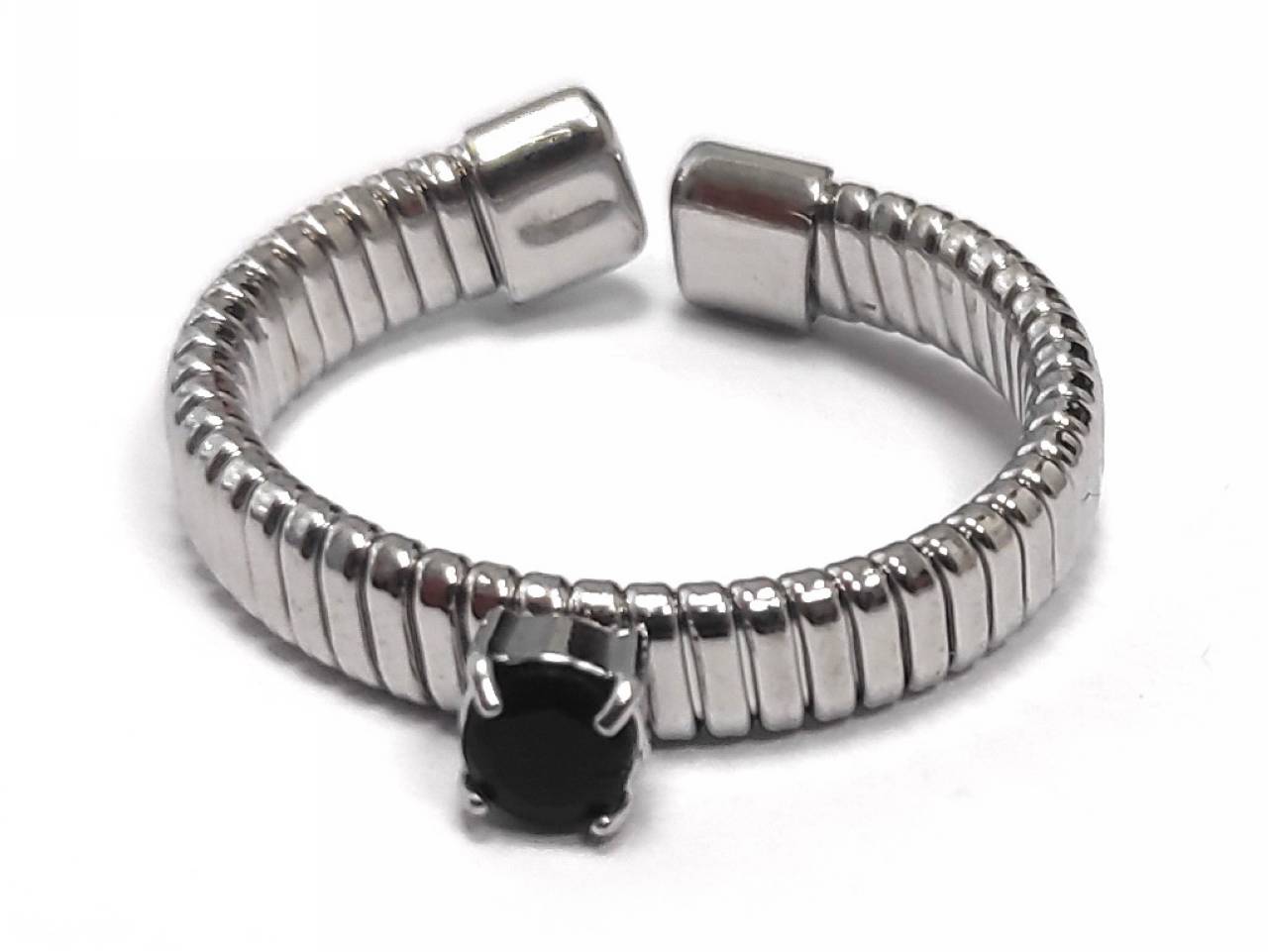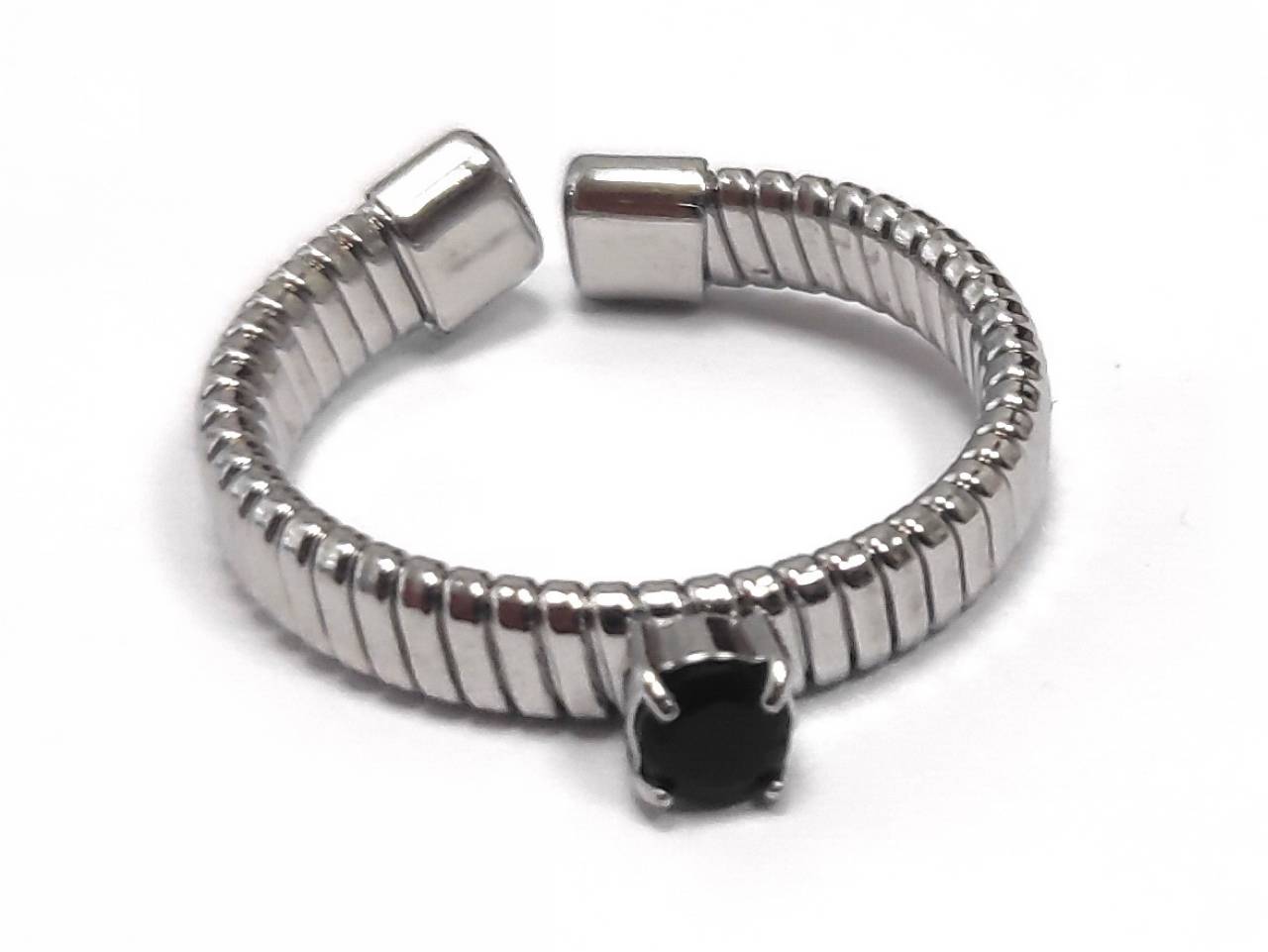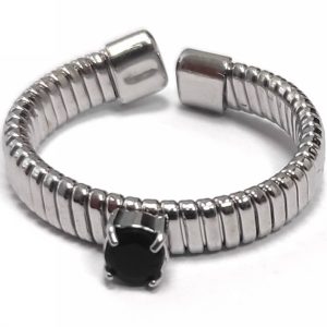 Δαχτυλίδι Ατσάλι 316L, με μαύρο κρυσταλλάκι σε χρώμα Ασημί