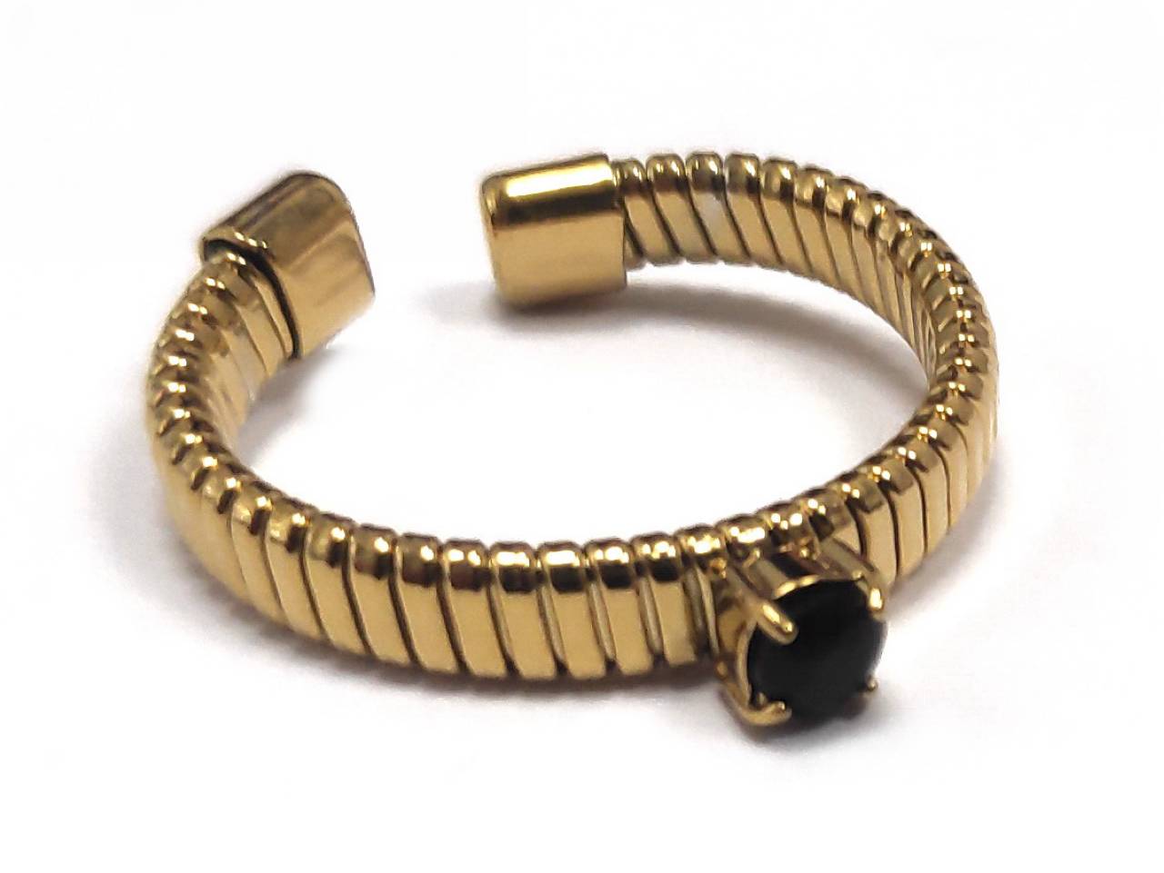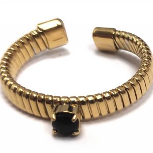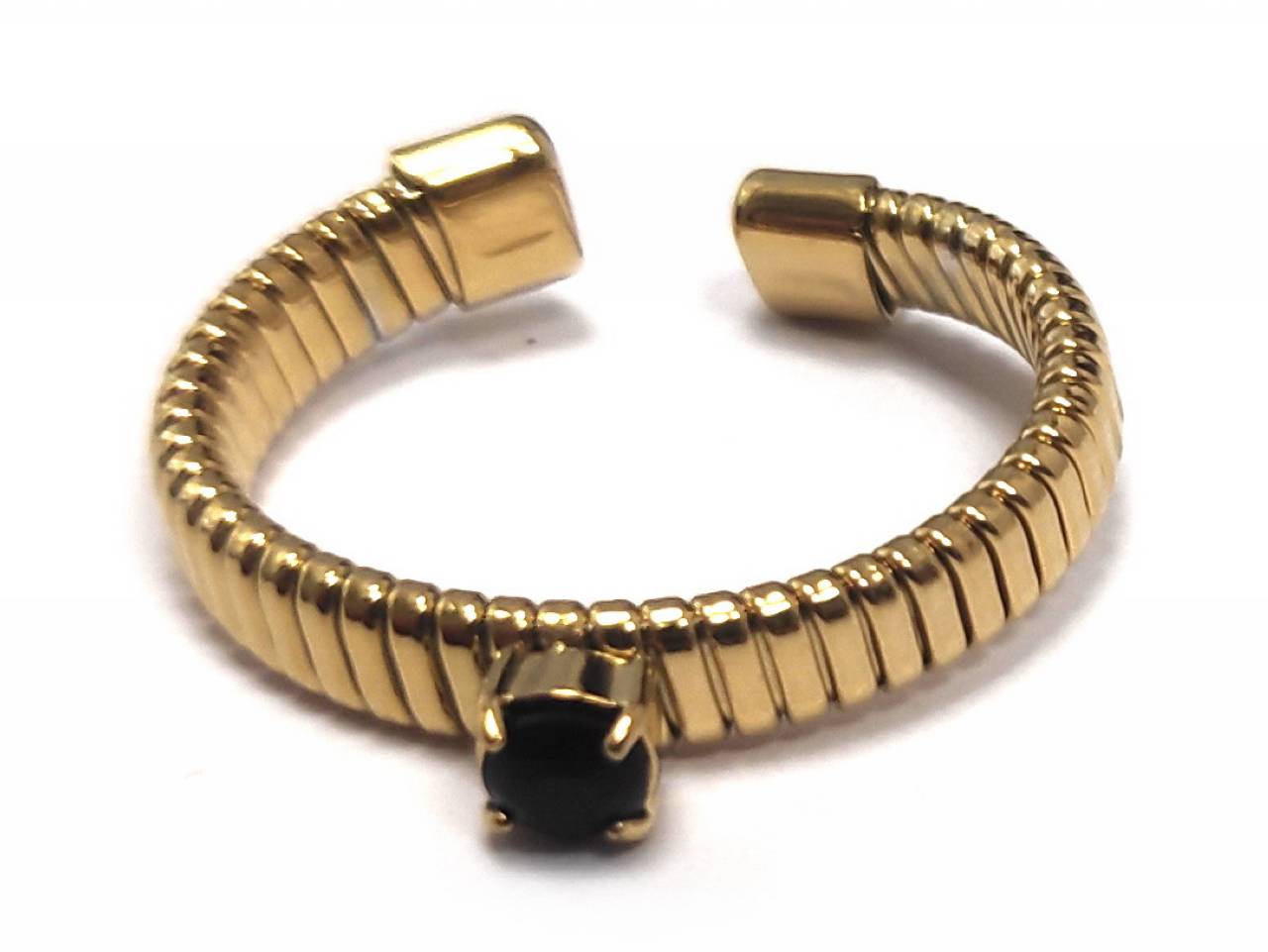 Δαχτυλίδι Ατσάλι 316L, με μαύρο κρυσταλλάκι σε χρώμα Χρυσαφί