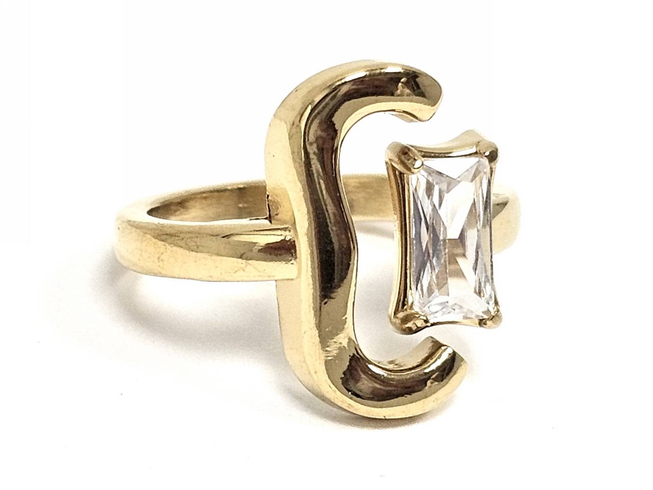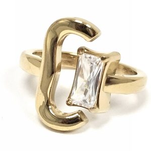 Δαχτυλίδι Ατσάλι 316L, με στρας σε χρώμα Χρυσαφί