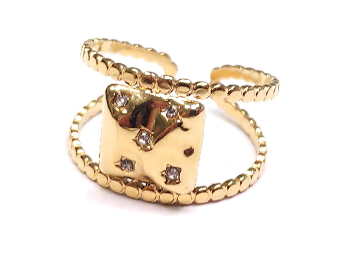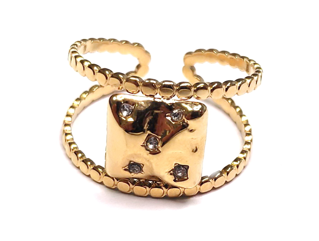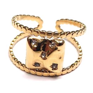 Δαχτυλίδι Ατσάλι 316L, με στρας σε χρώμα Χρυσαφί