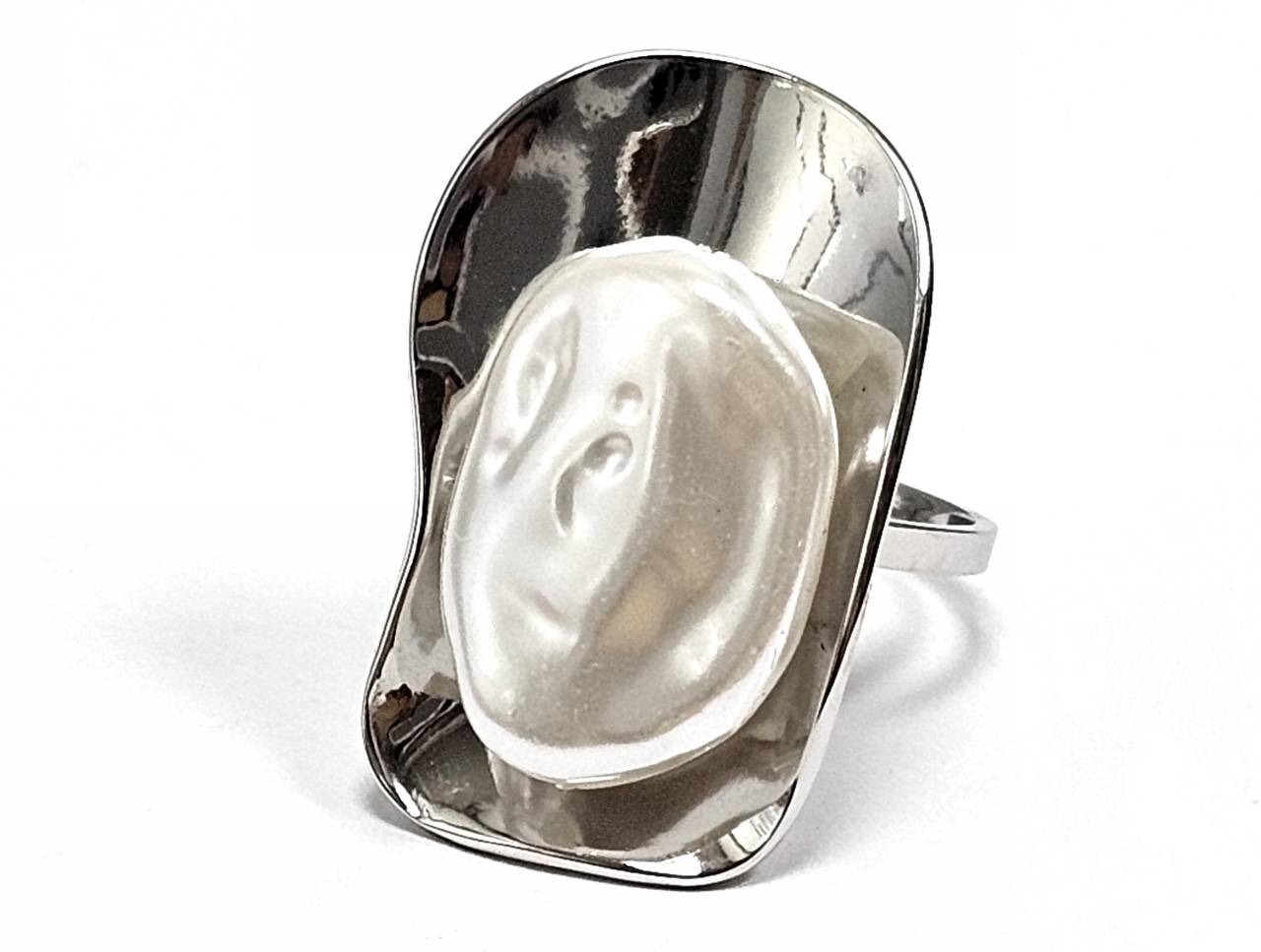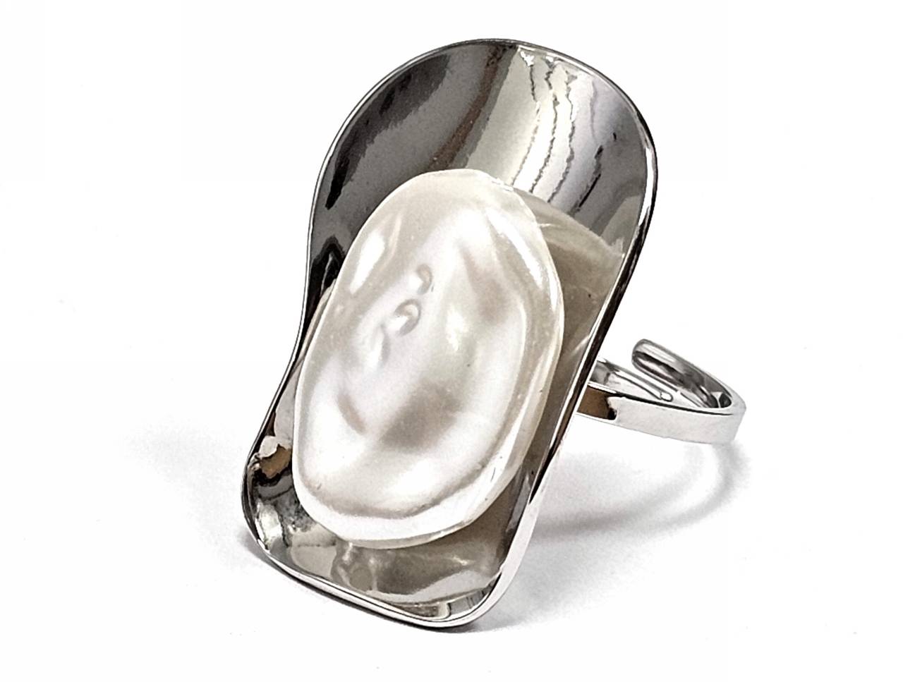 Δαχτυλίδι Ατσάλι 316L, με μαργαριτάρι σε χρώμα Ασημί