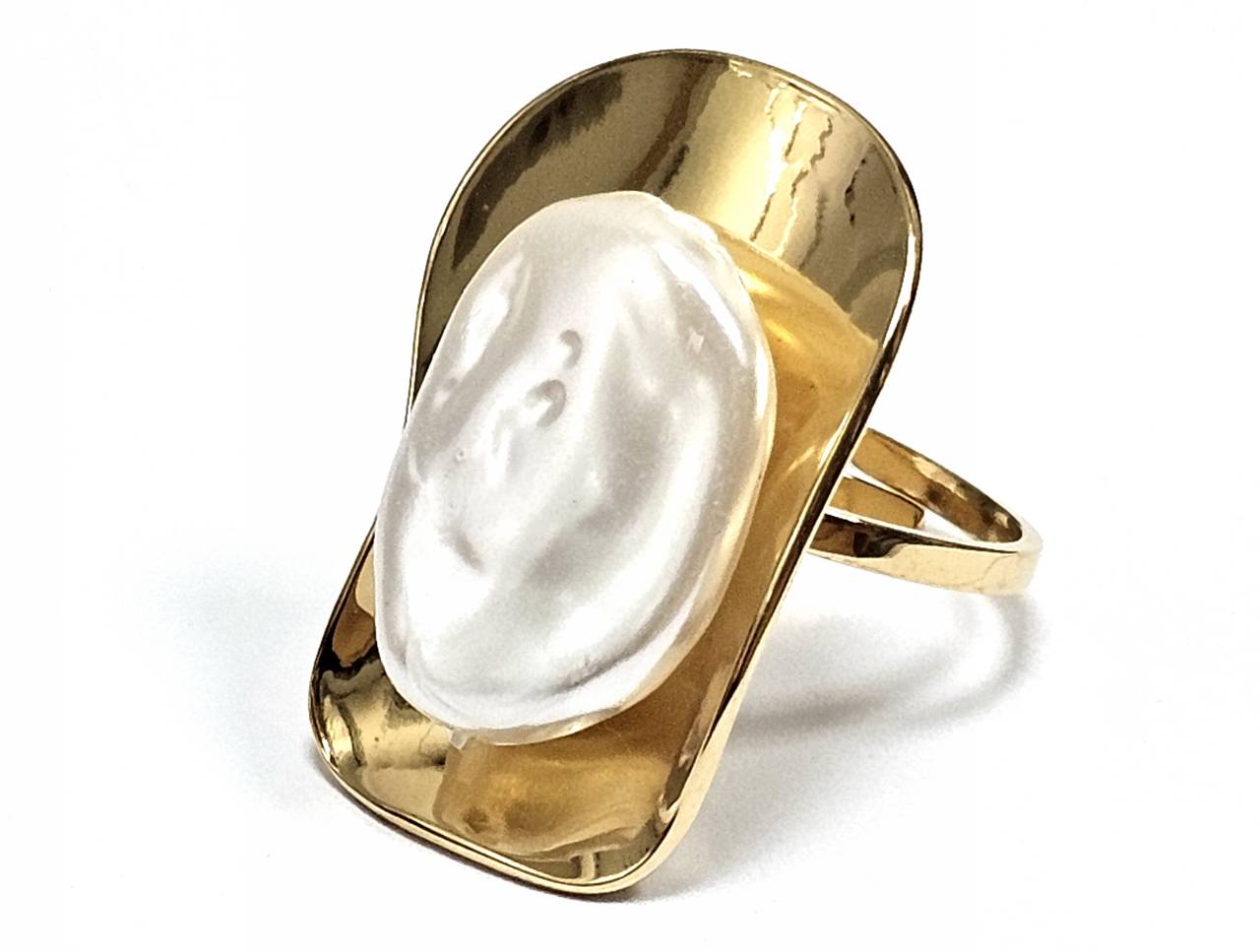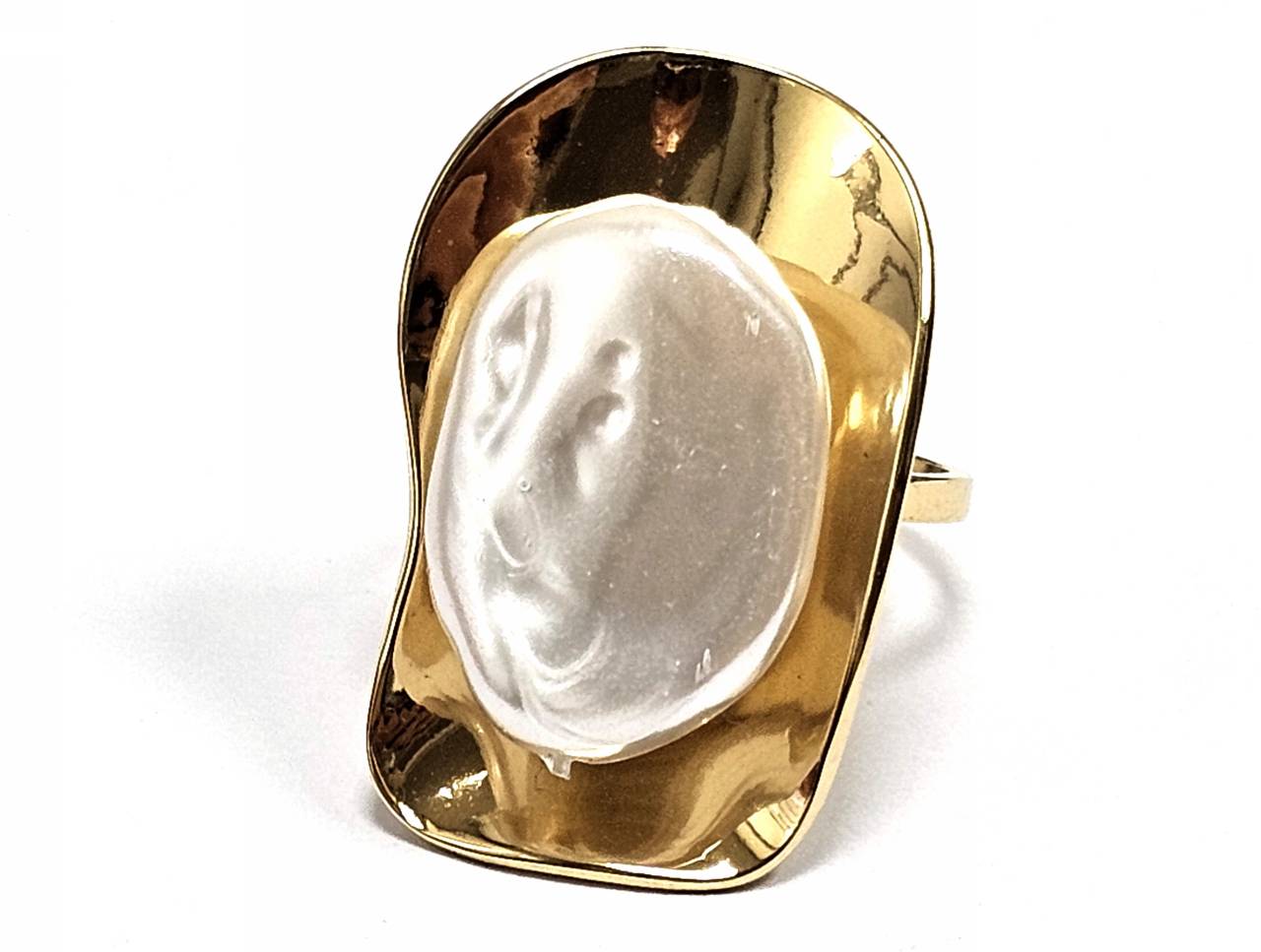 Δαχτυλίδι Ατσάλι 316L, με μαργαριτάρι σε χρώμα Χρυσαφί