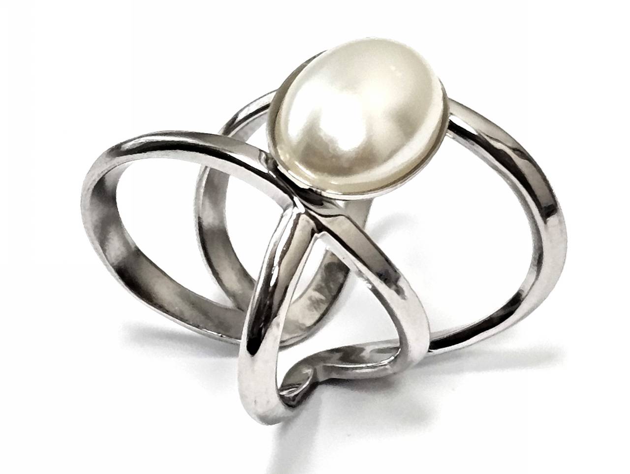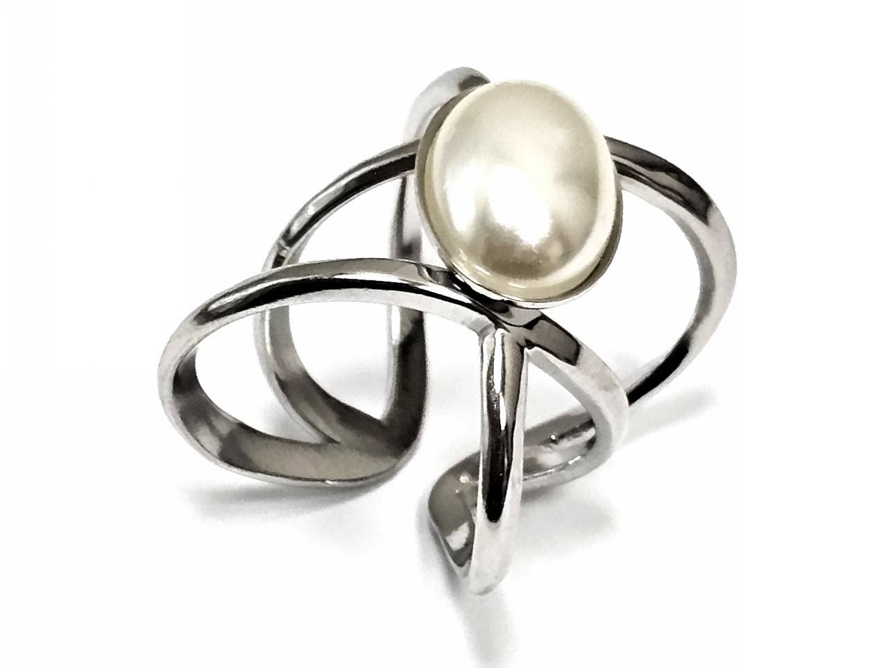 Δαχτυλίδι Ατσάλι 316L, με πέρλα σε χρώμα Ασημί