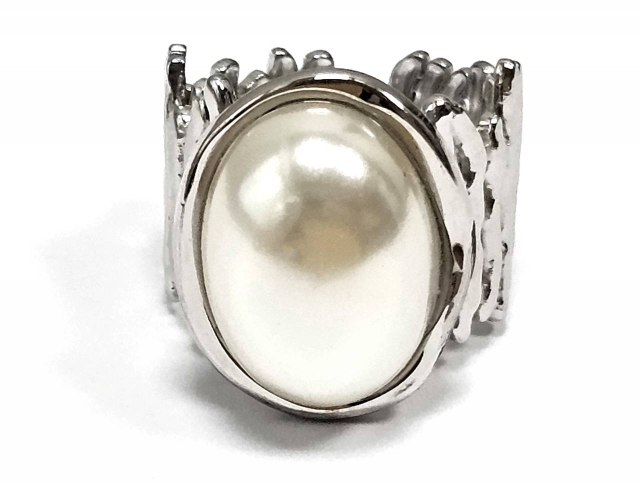 Δαχτυλίδι Ατσάλι 316L, με πέρλα σε χρώμα Ασημί