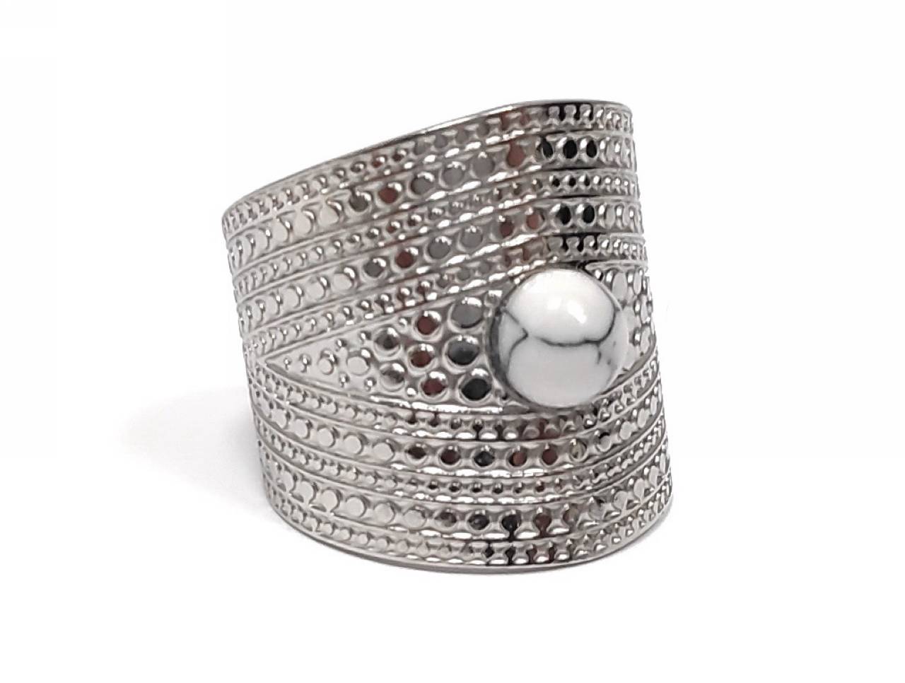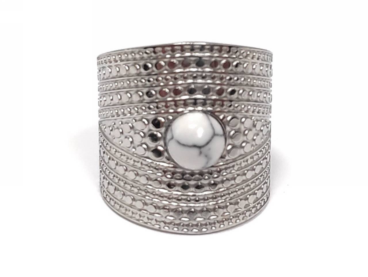 Δαχτυλίδι Πέτρα 316L, με χαολίτη σε χρώμα Ασημί