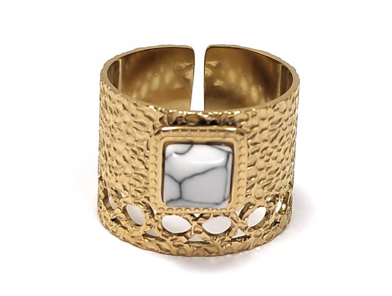 Δαχτυλίδι Πέτρα 316L, με χαολίτη σε χρώμα Χρυσαφί