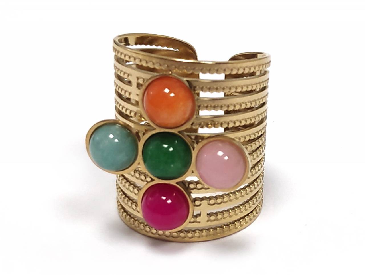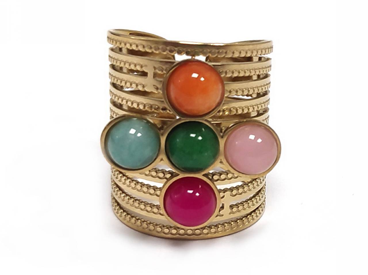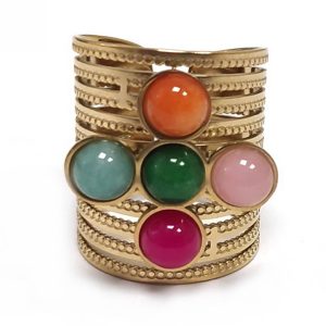 Δαχτυλίδι Πέτρα 316L, με κρυσταλλάκια σε χρώμα Χρυσαφί