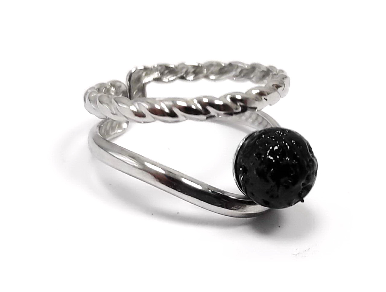 Δαχτυλίδι Πέτρα 316L, με λάβα σε χρώμα Ασημί