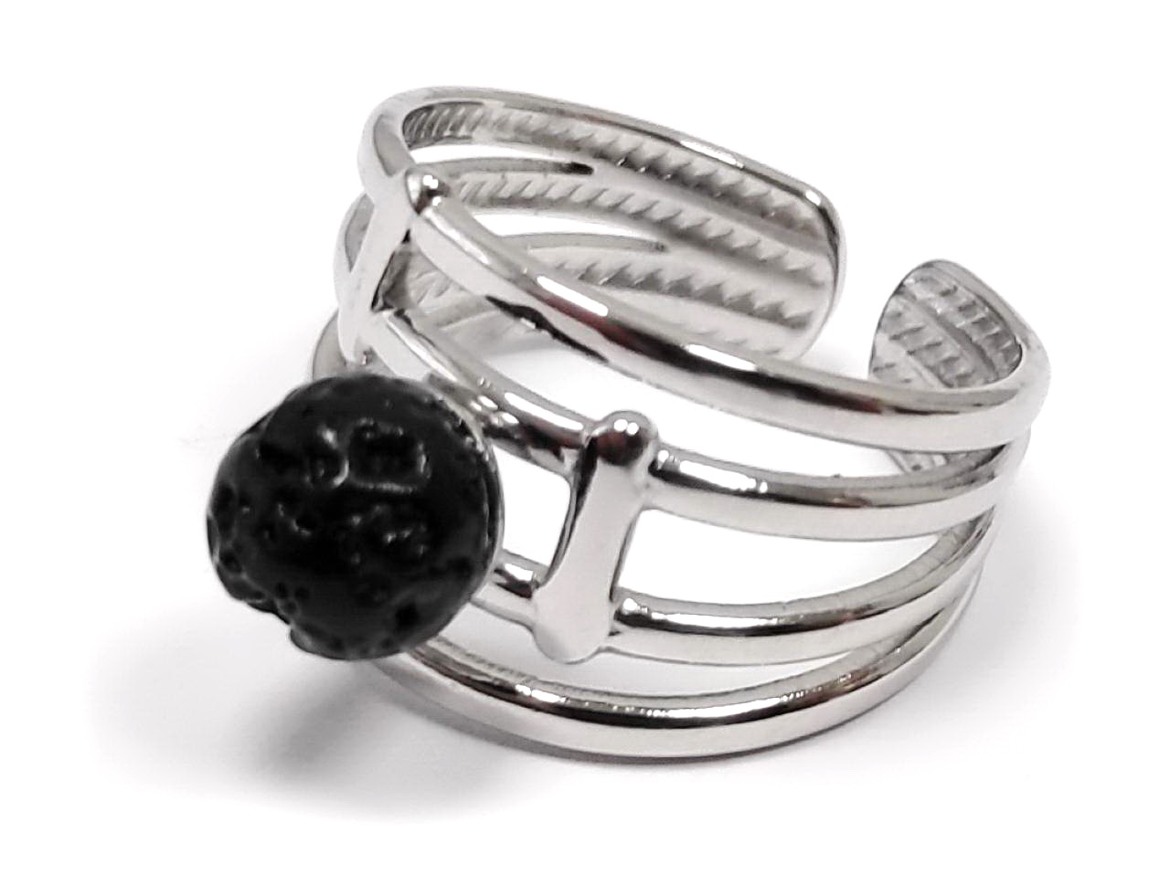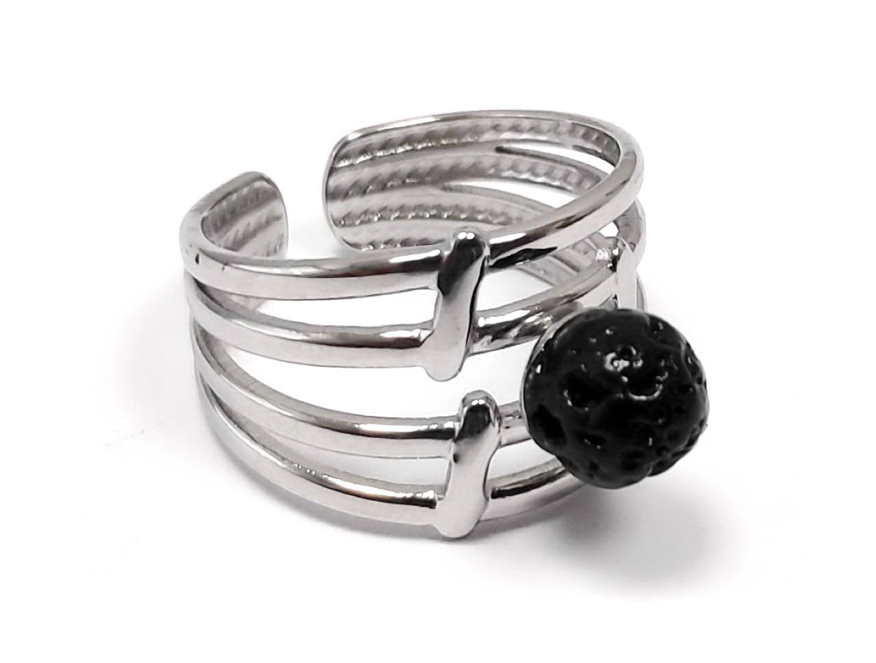 Δαχτυλίδι Πέτρα 316L, με λάβα σε χρώμα Ασημί