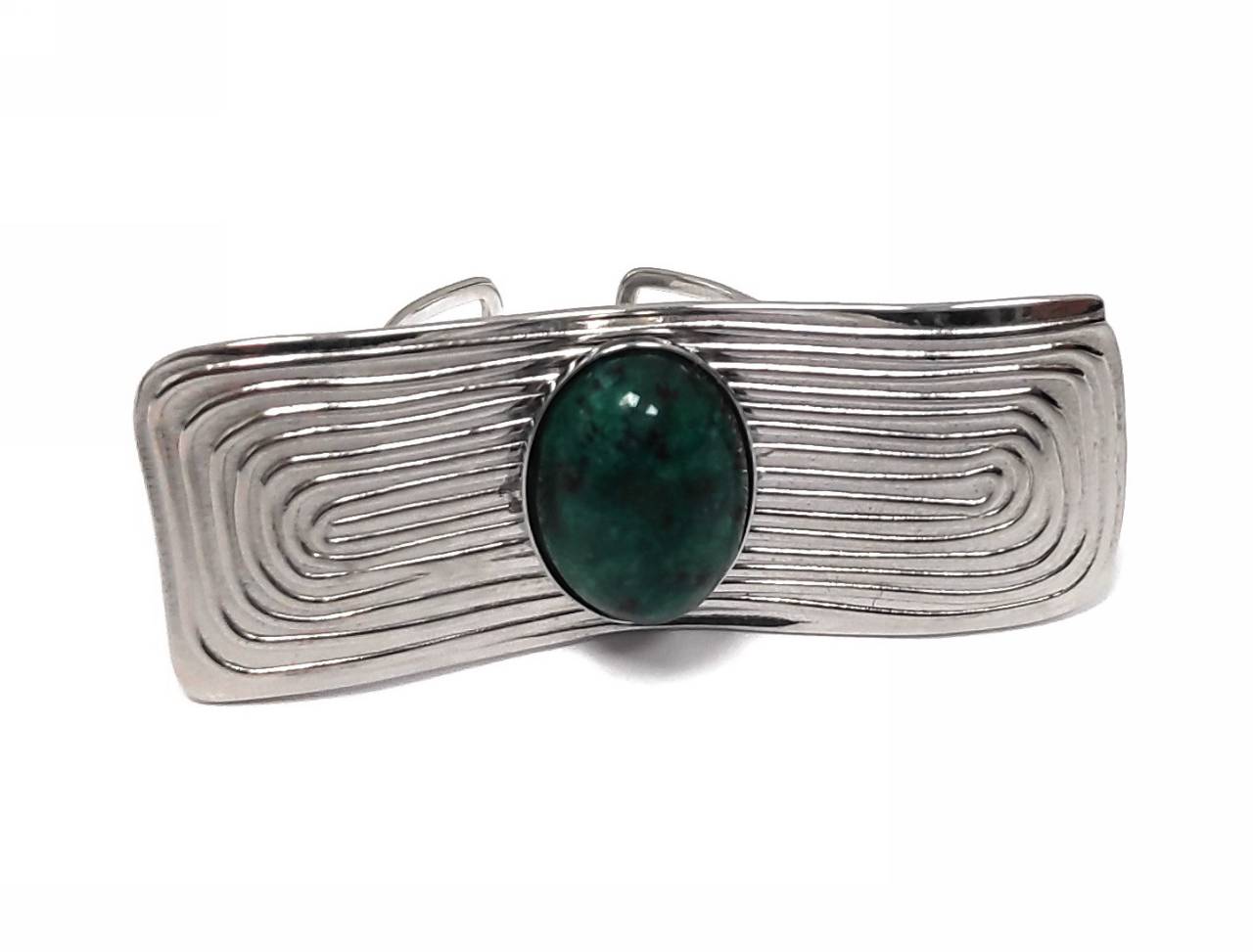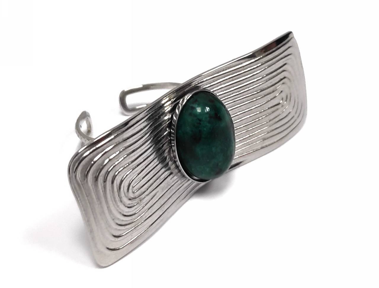 Δαχτυλίδι Πέτρα 316L, με μαλαχίτη σε χρώμα Ασημί
