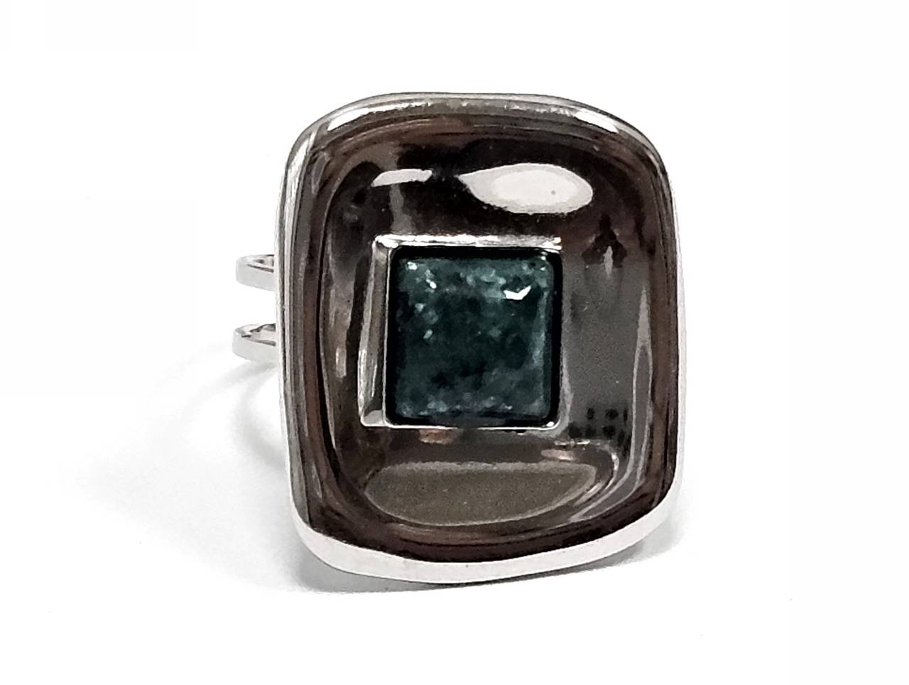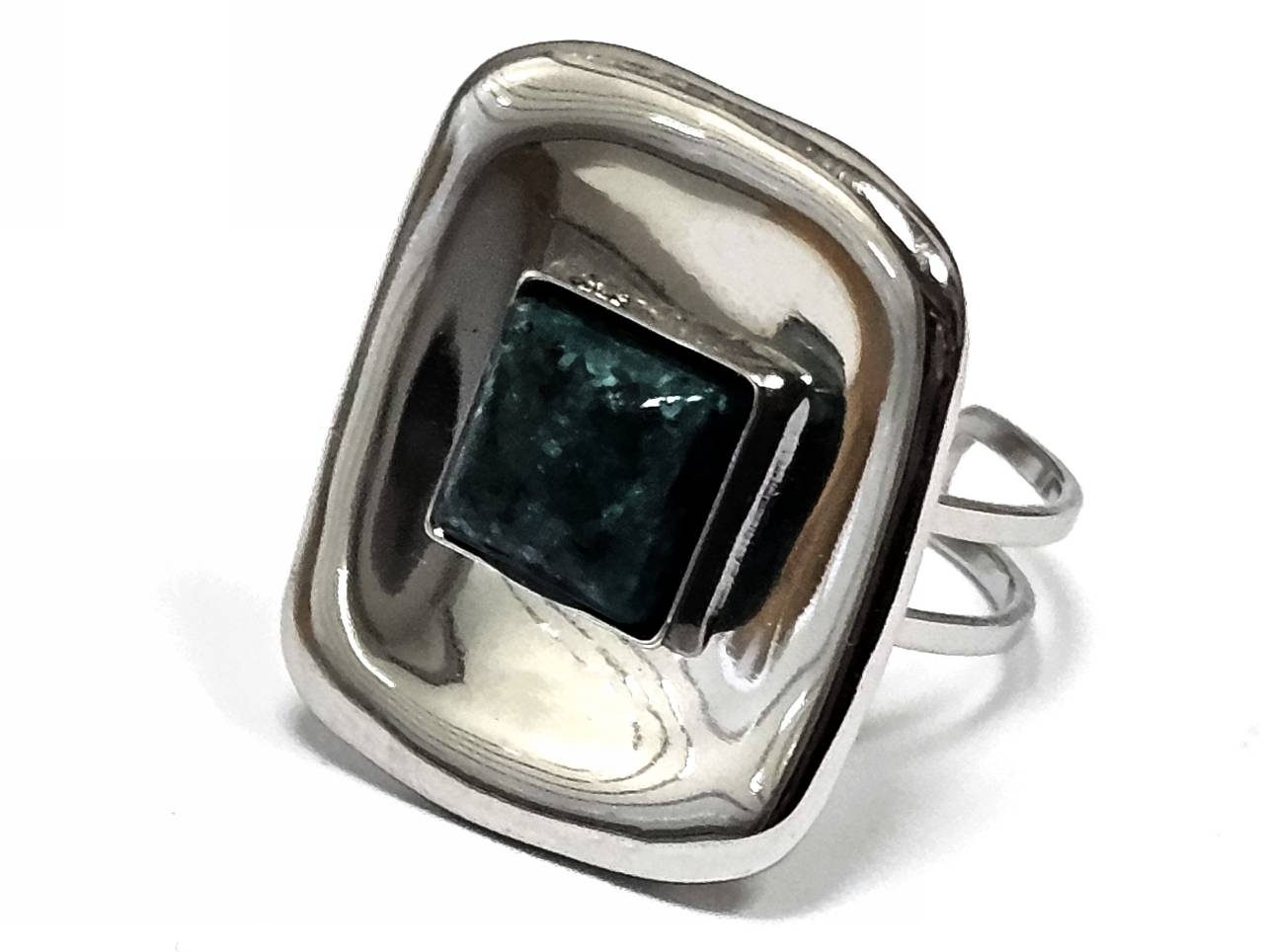 Δαχτυλίδι Πέτρα 316L, με μαλαχίτη σε χρώμα Ασημί