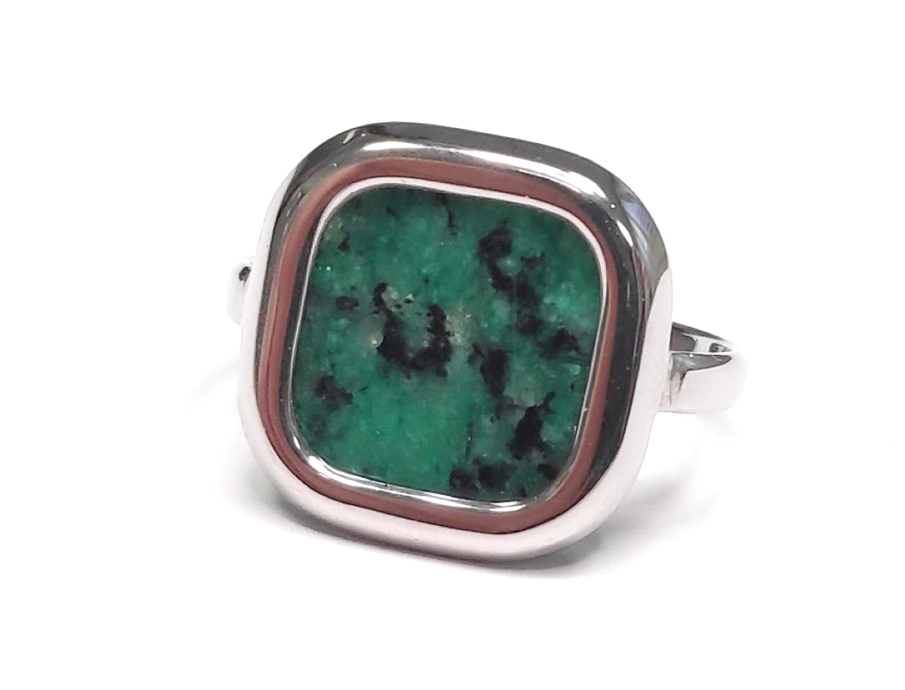 Δαχτυλίδι Πέτρα 316L με μαλαχίτη σε χρώμα Ασημί