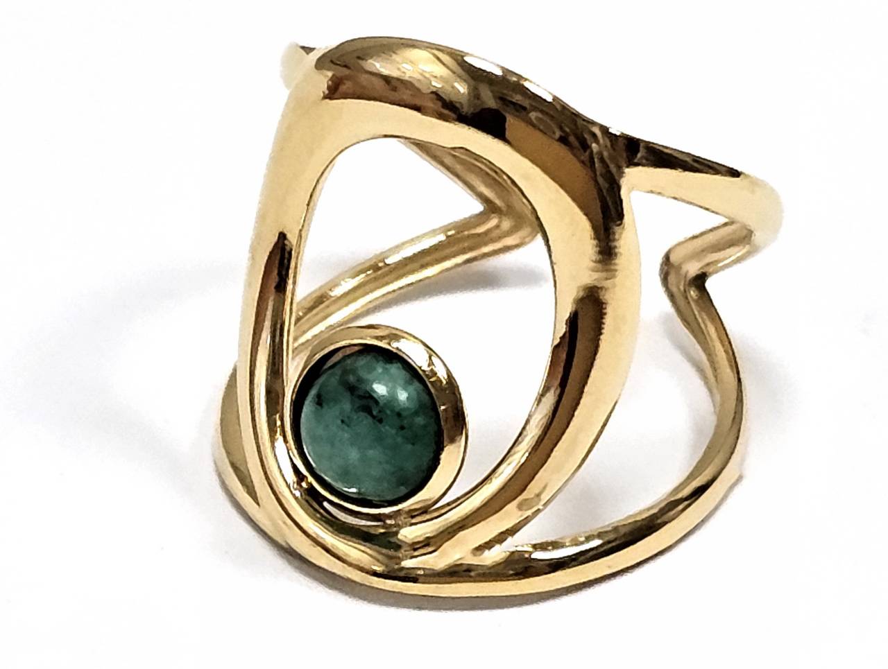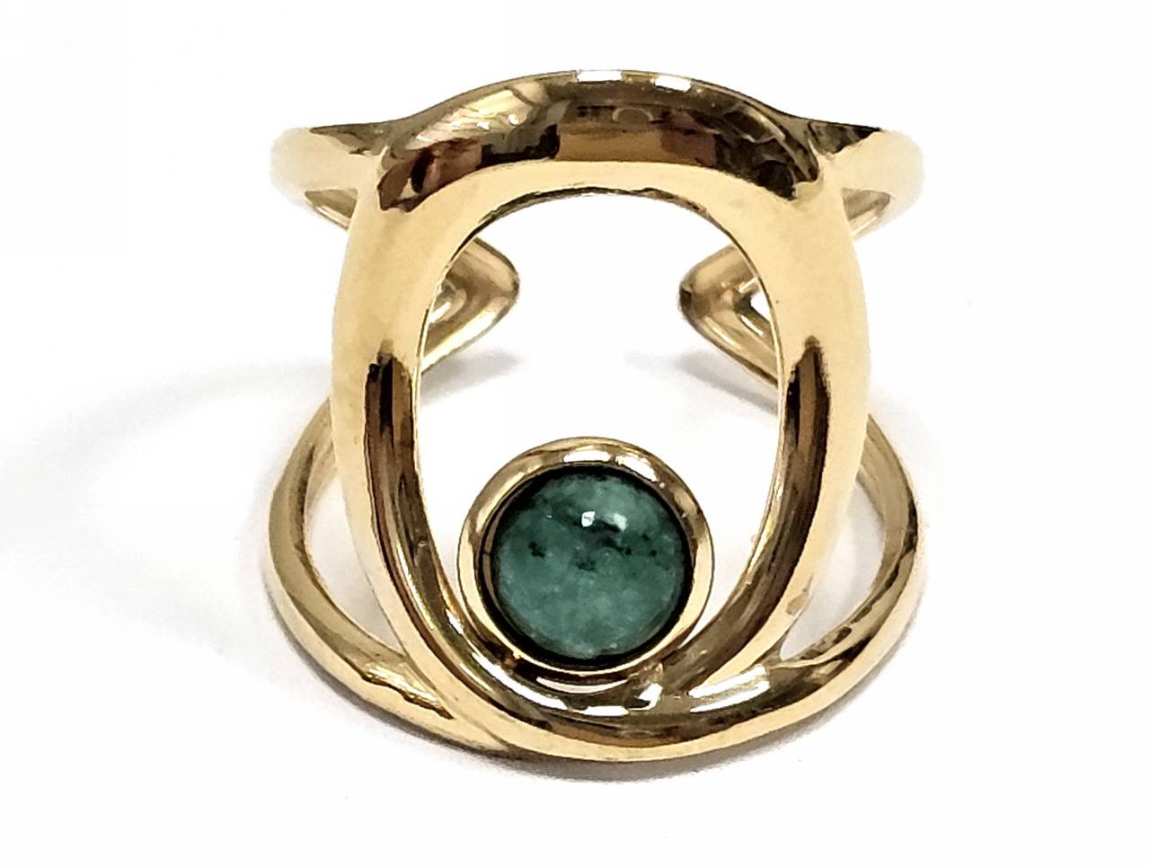 Δαχτυλίδι Πέτρα 316L, με μαλαχίτη σε χρώμα Χρυσαφί