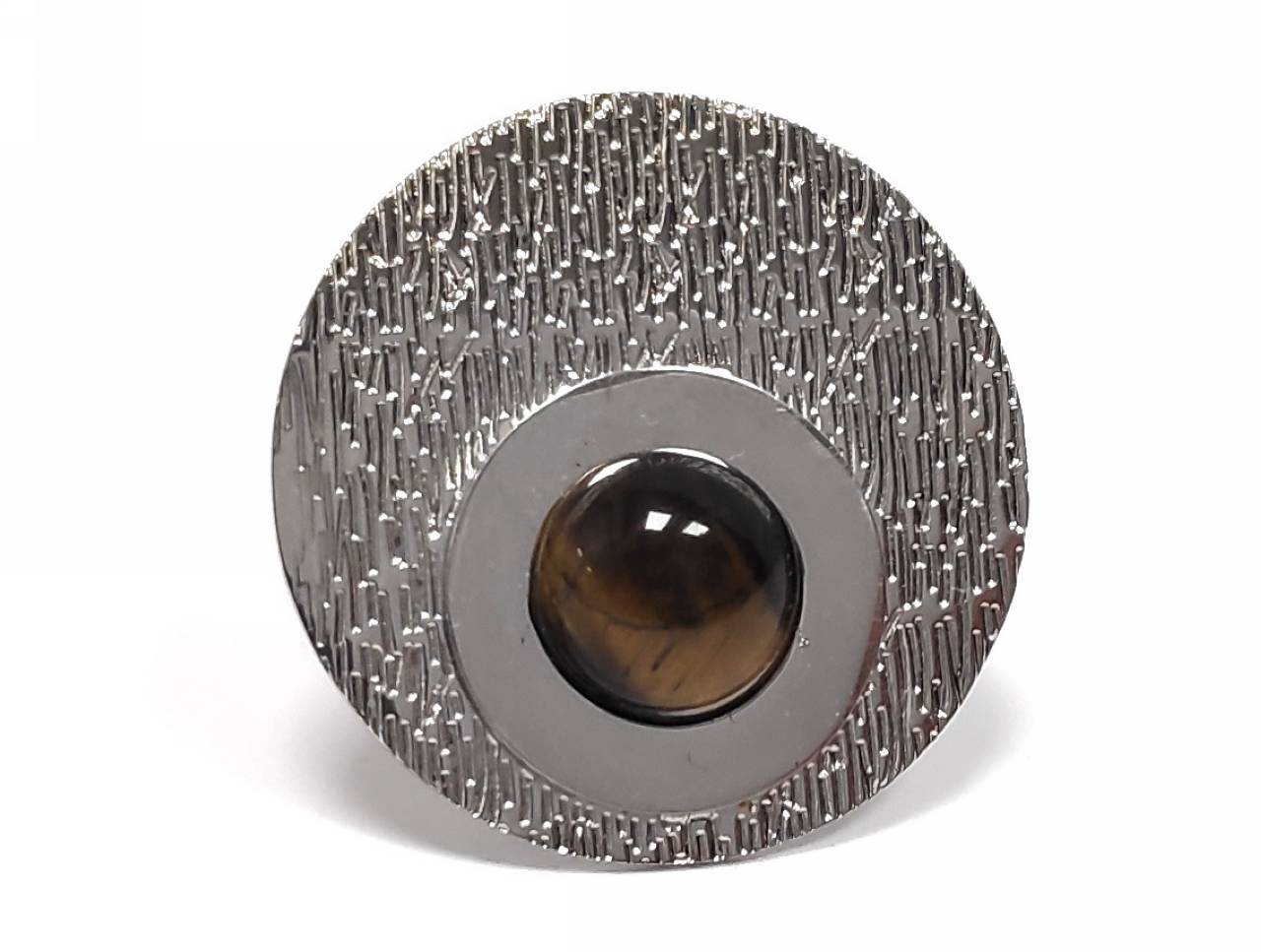 Δαχτυλίδι Πέτρα 316L, με μάτι τίγρης σε χρώμα Ασημί