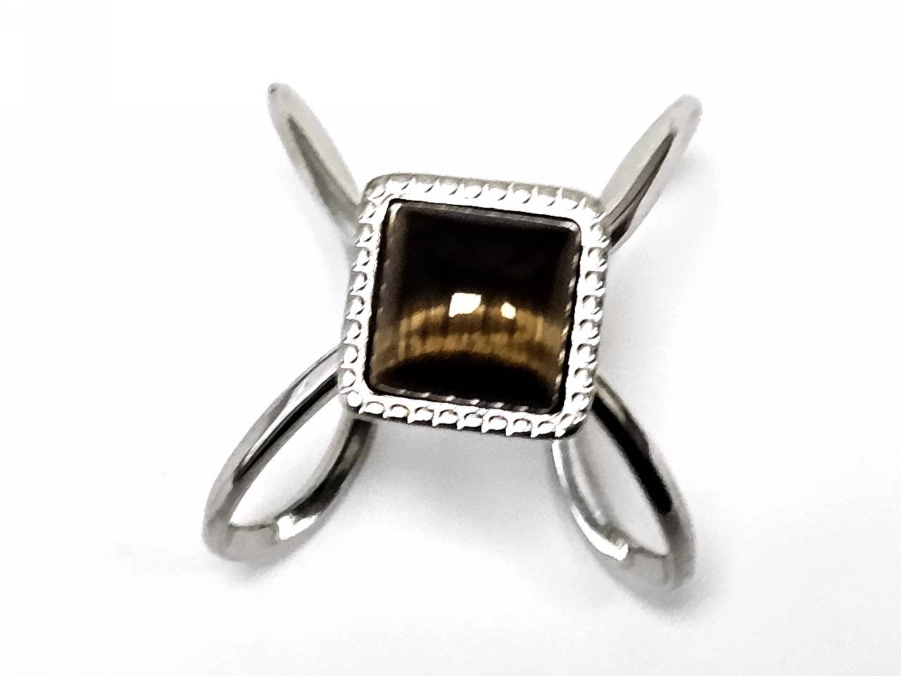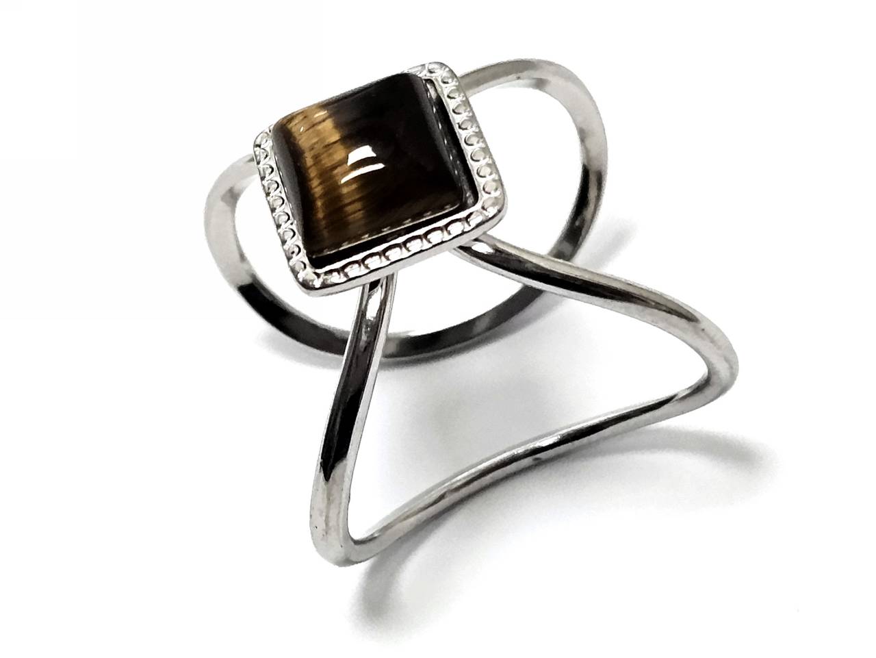 Δαχτυλίδι Πέτρα 316L, με μάτι τίγρης σε χρώμα Ασημί