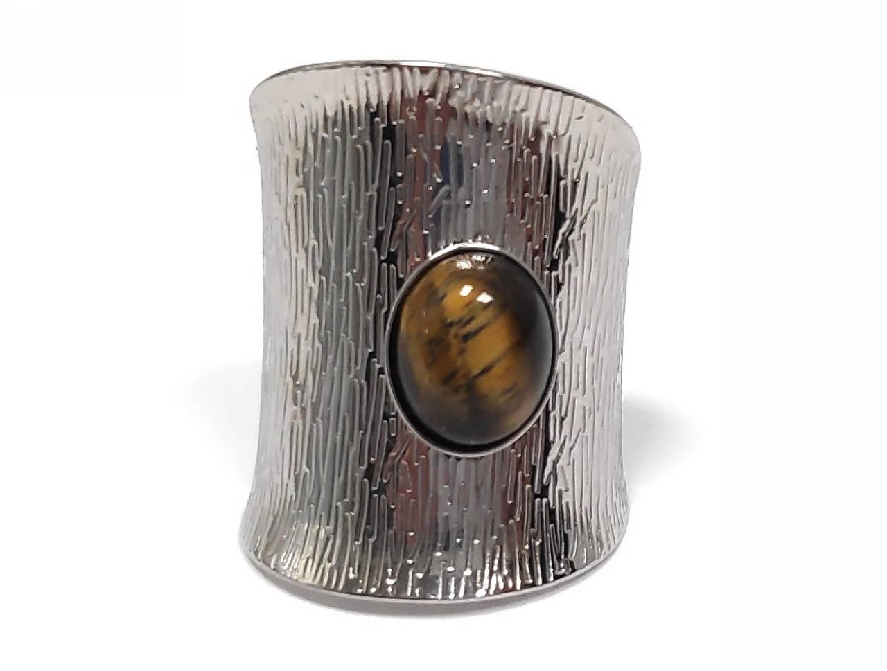 Δαχτυλίδι Πέτρα 316L, με μάτι τίγρης σε χρώμα Ασημί