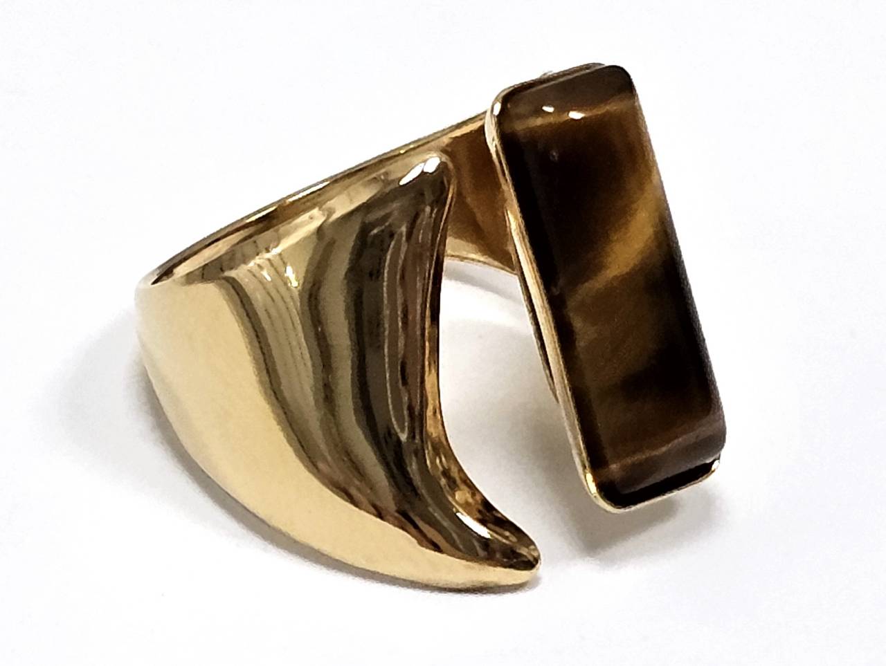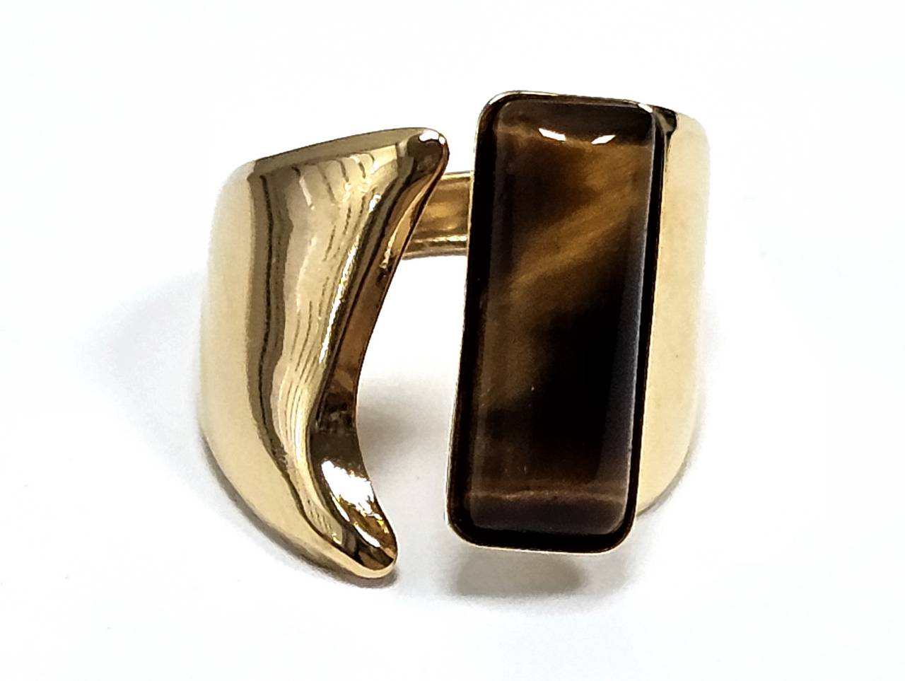 Δαχτυλίδι Πέτρα 316L, με μάτι τίγρης σε χρώμα Χρυσαφί