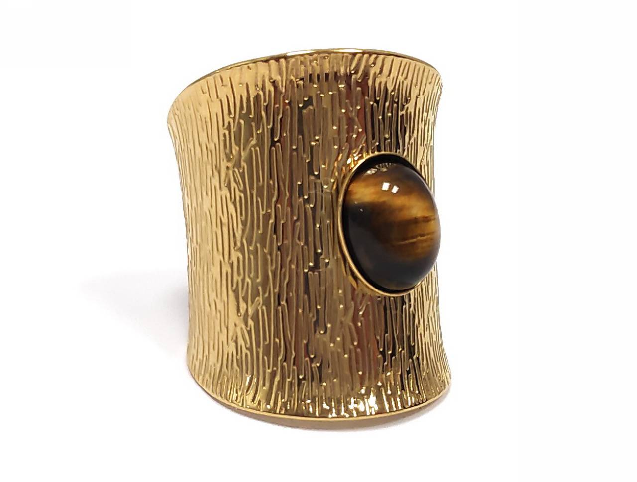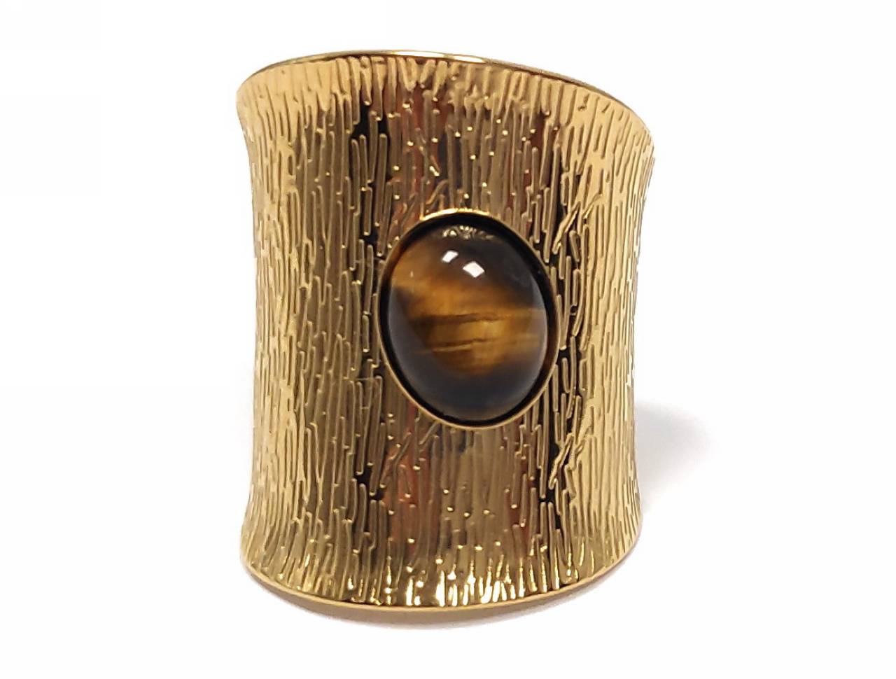 Δαχτυλίδι Πέτρα 316L, με μάτι τίγρης σε χρώμα Χρυσαφί