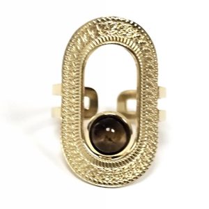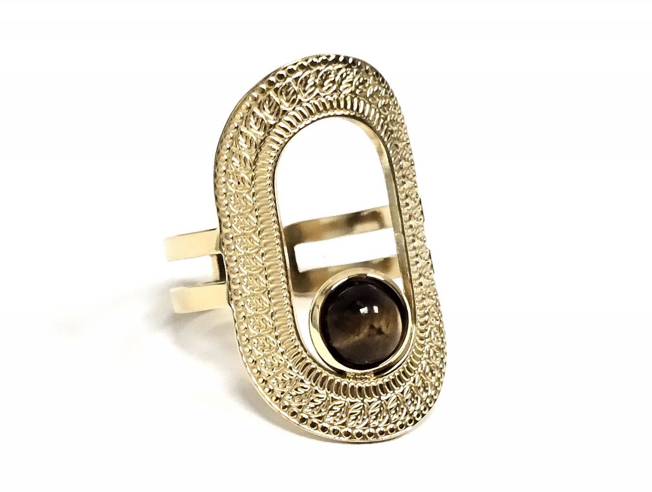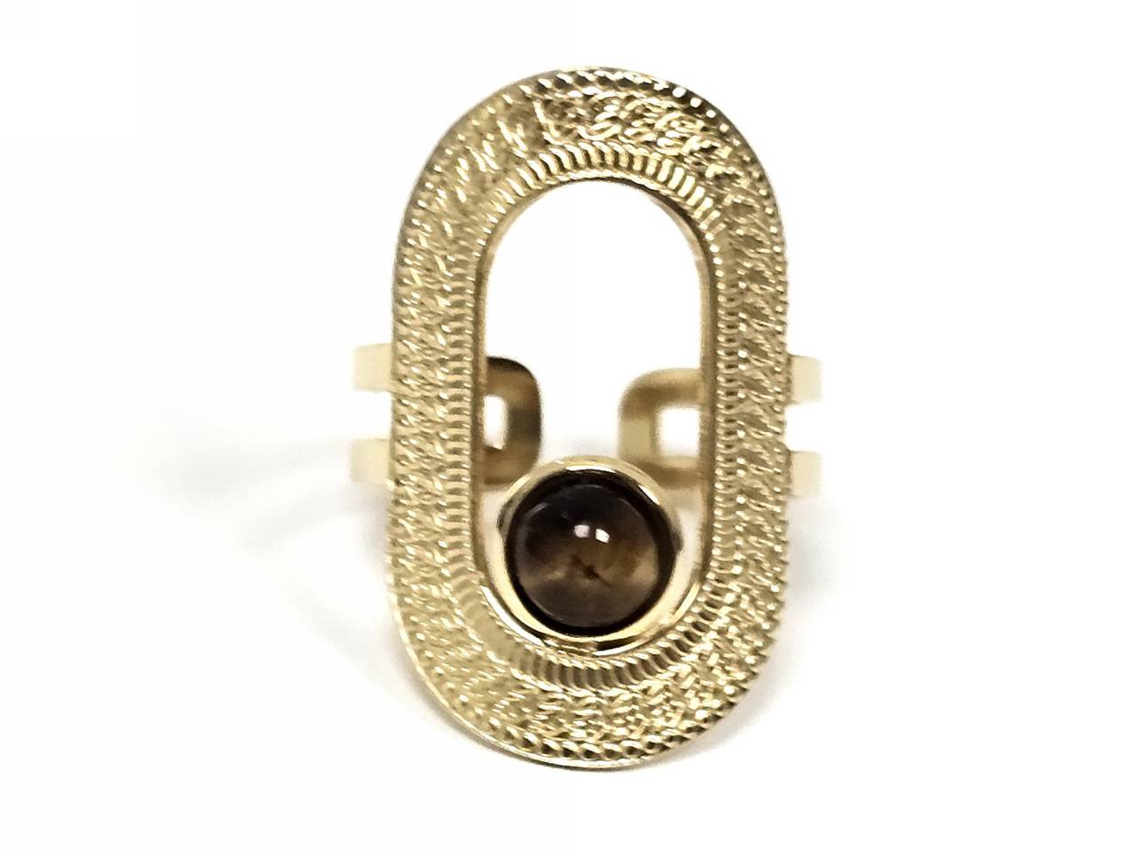 Δαχτυλίδι Πέτρα ατσάλι 316L, με μάτι τίγρης σε χρώμα Χρυσαφί