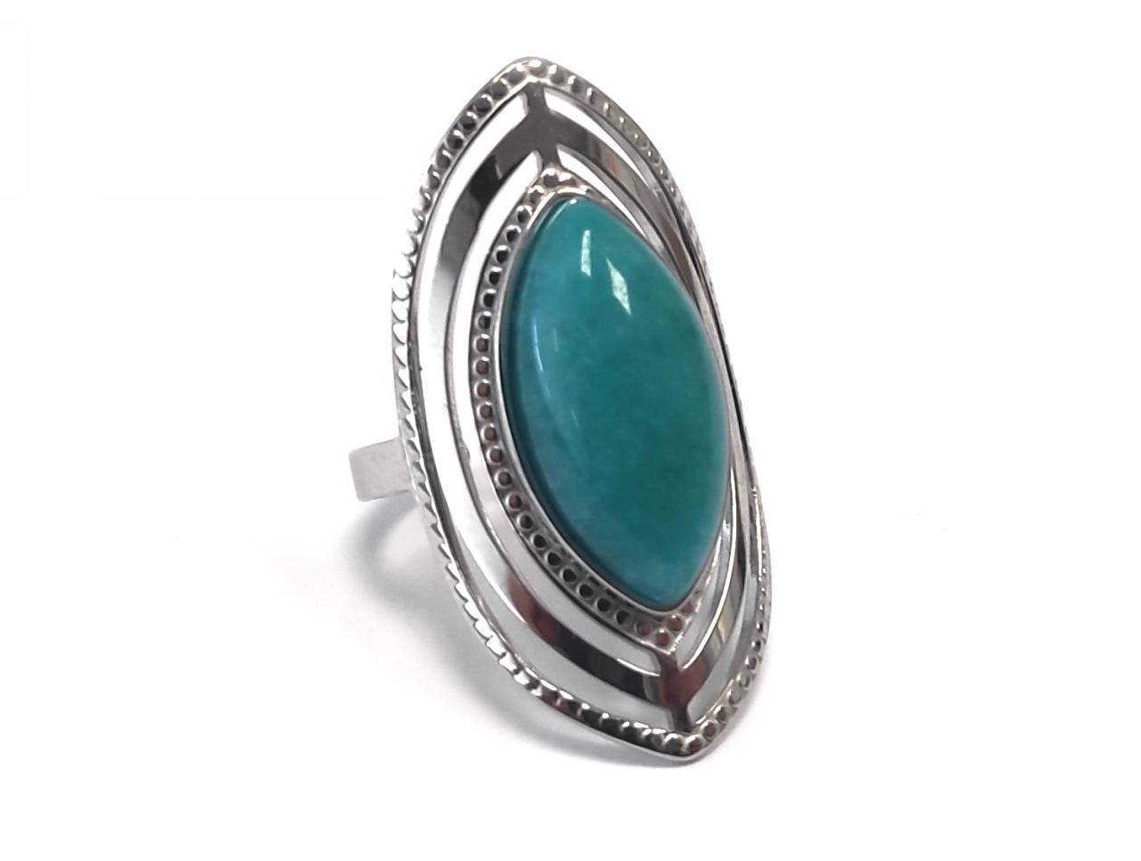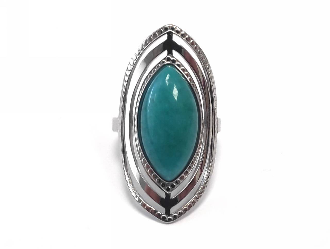 Δαχτυλίδι Πέτρα 316L, με τυρκουάζ σε χρώμα Ασημί