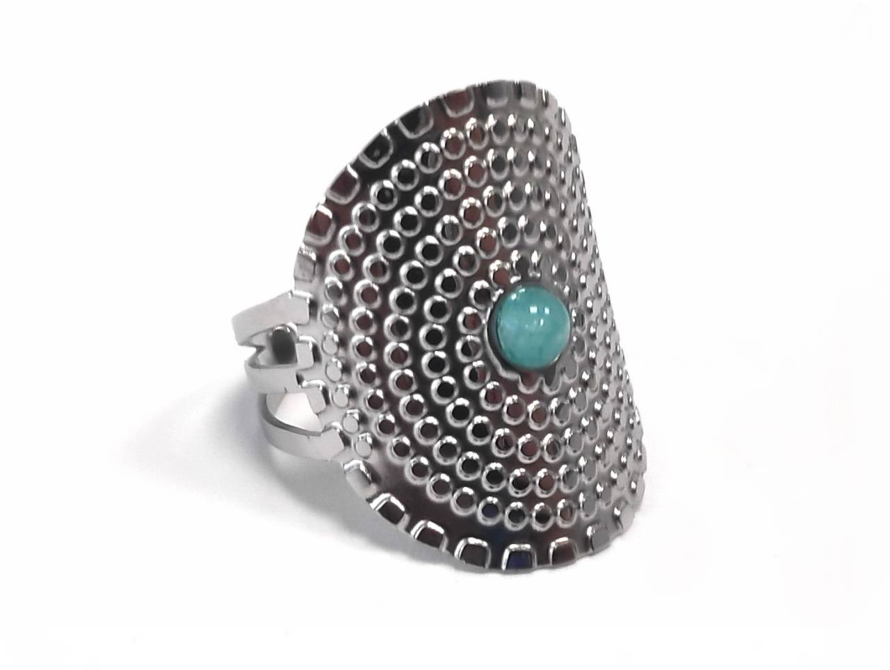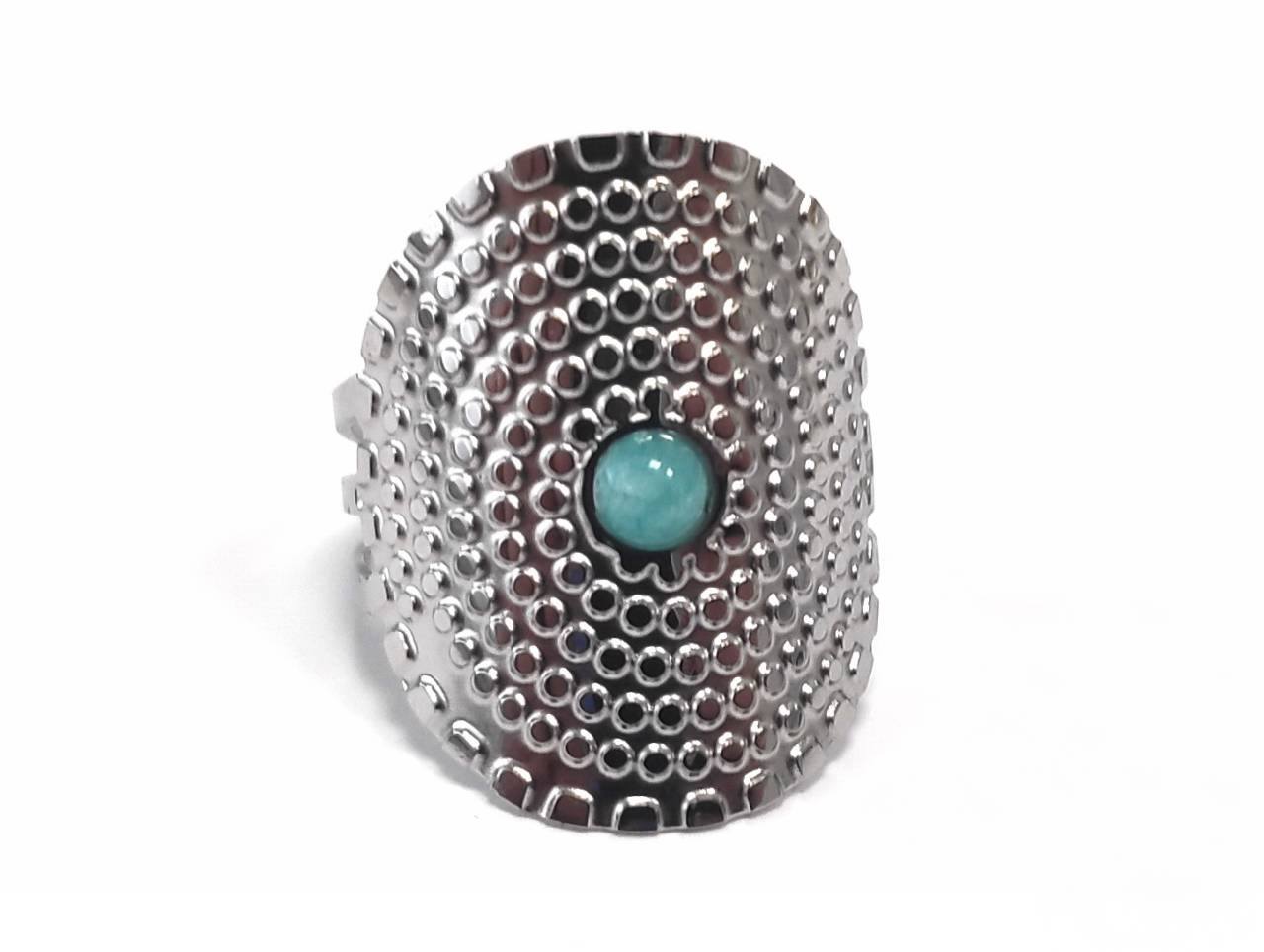 Δαχτυλίδι Πέτρα 316L, με τυρκουάζ σε χρώμα Ασημί