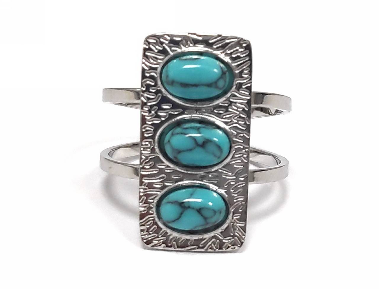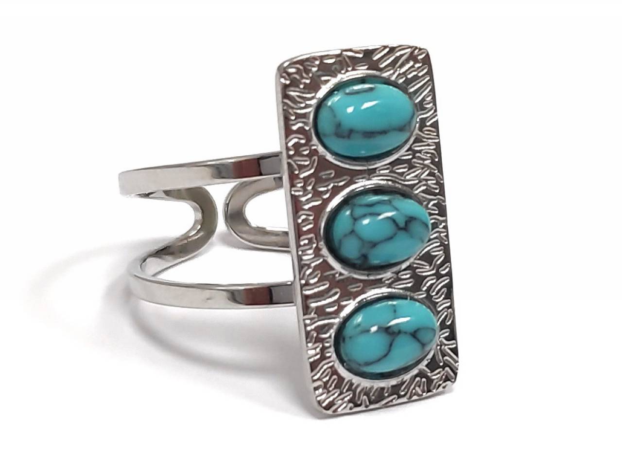 Δαχτυλίδι Πέτρα 316L, με τυρκουάζ σε χρώμα Ασημί