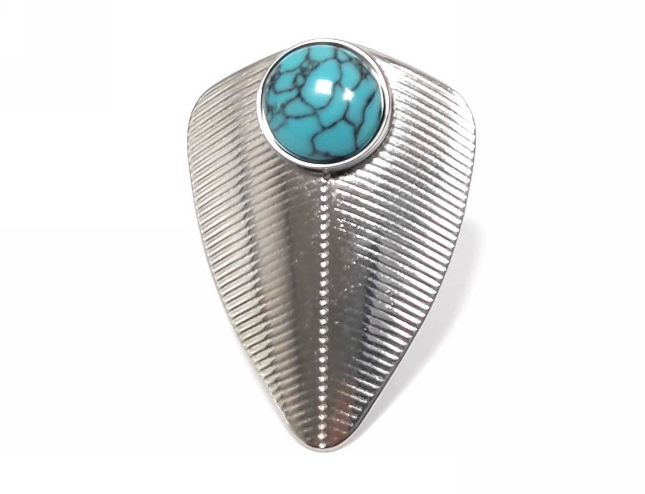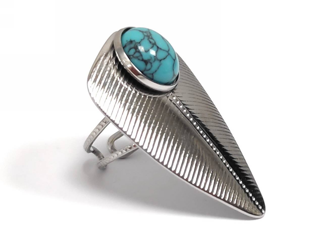 Δαχτυλίδι Πέτρα 316L, με τυρκουάζ σε χρώμα Ασημί
