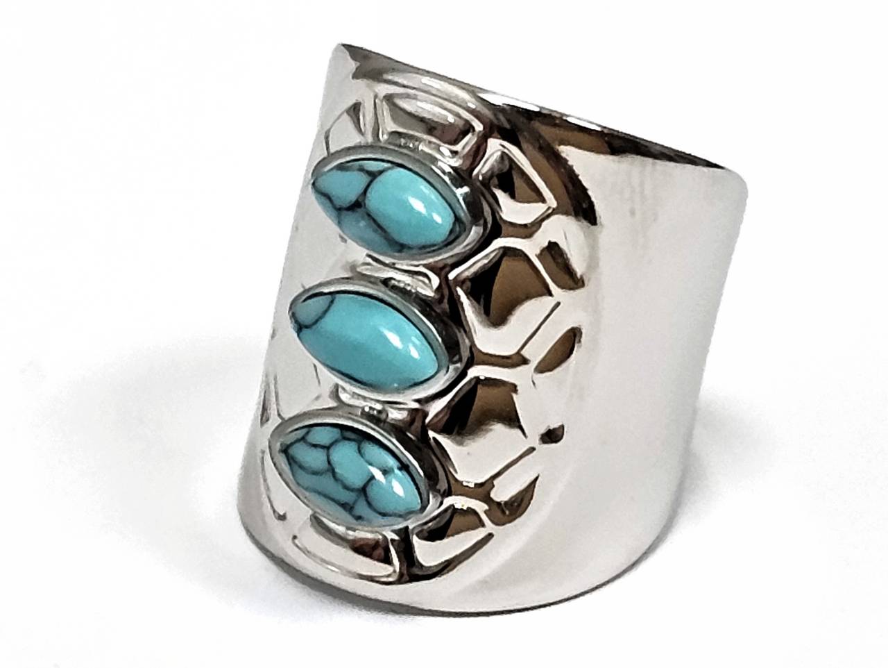 Δαχτυλίδι Πέτρα 316L, με τυρκουάζ σε χρώμα Ασημί