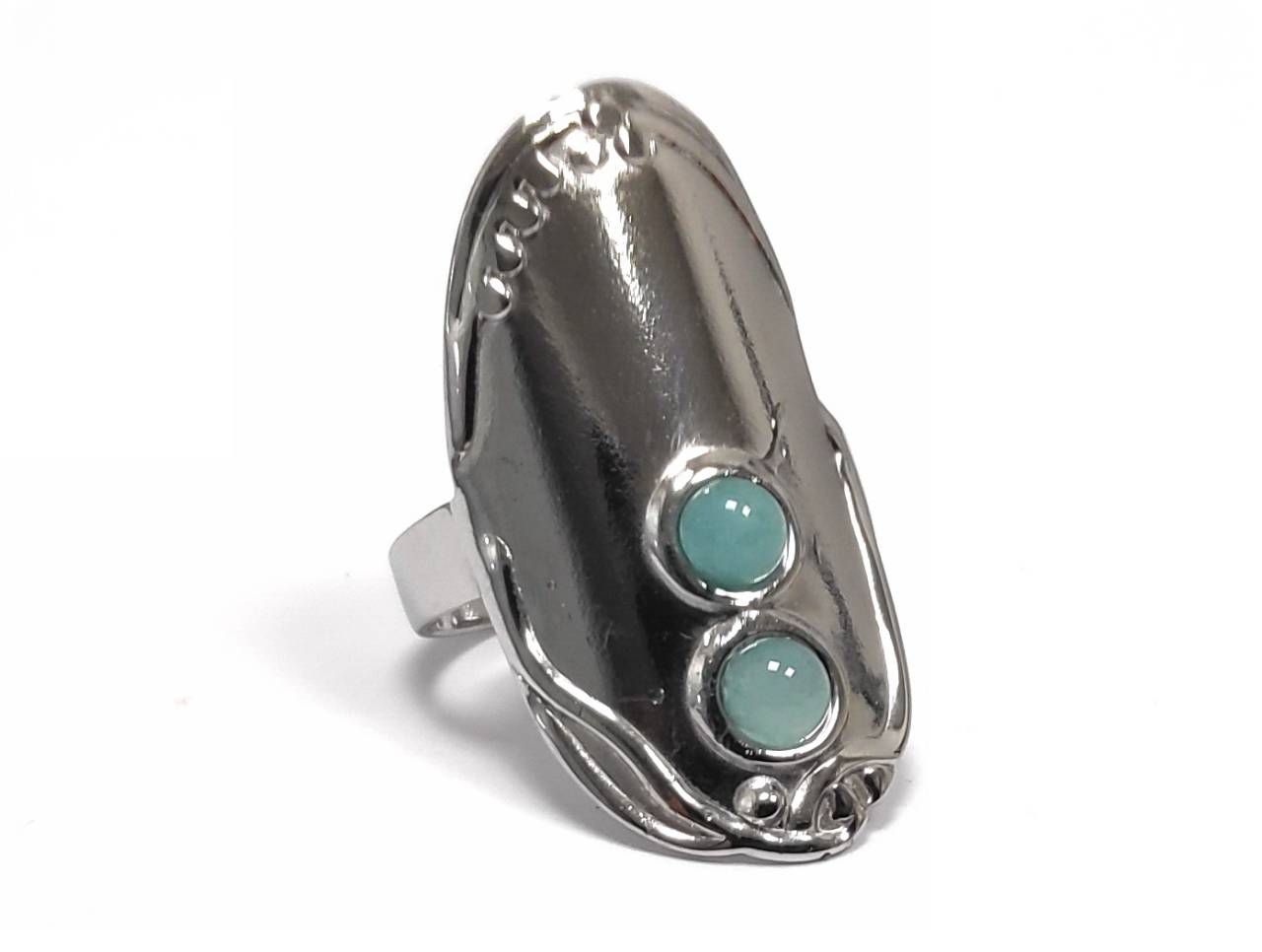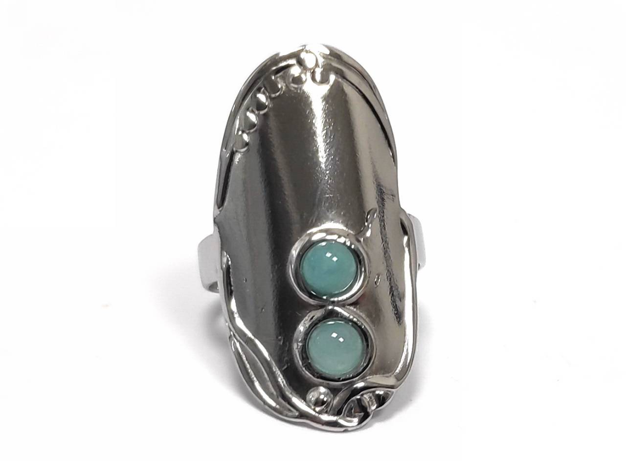 Δαχτυλίδι Πέτρα 316L, με τυρκουάζ σε χρώμα Ασημί