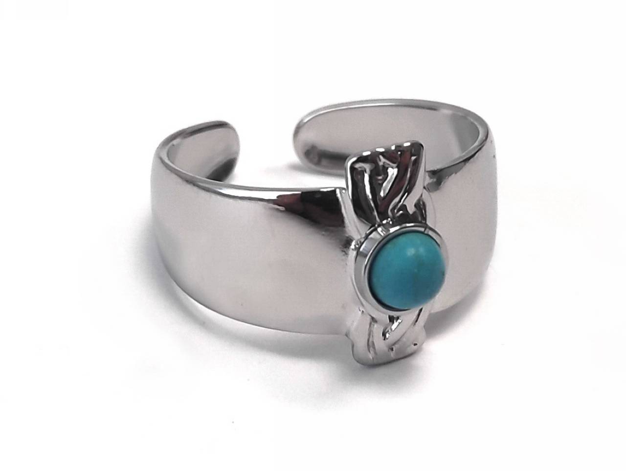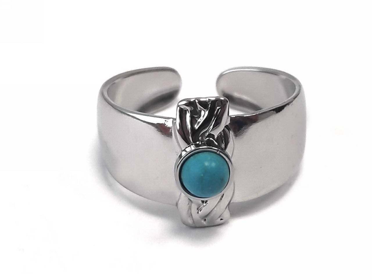 Δαχτυλίδι Πέτρα 316L, με τυρκουάζ σε χρώμα Ασημί