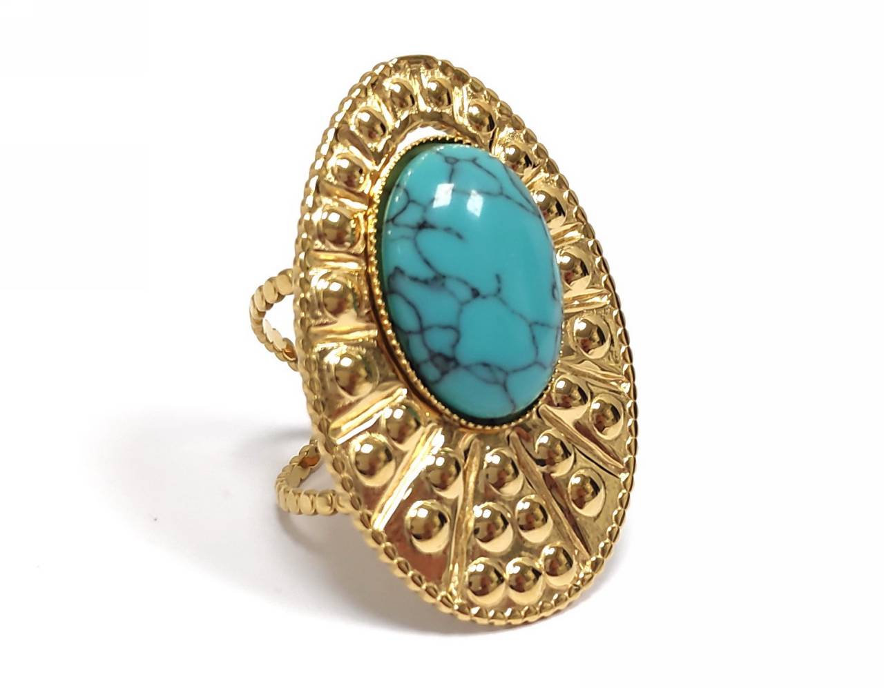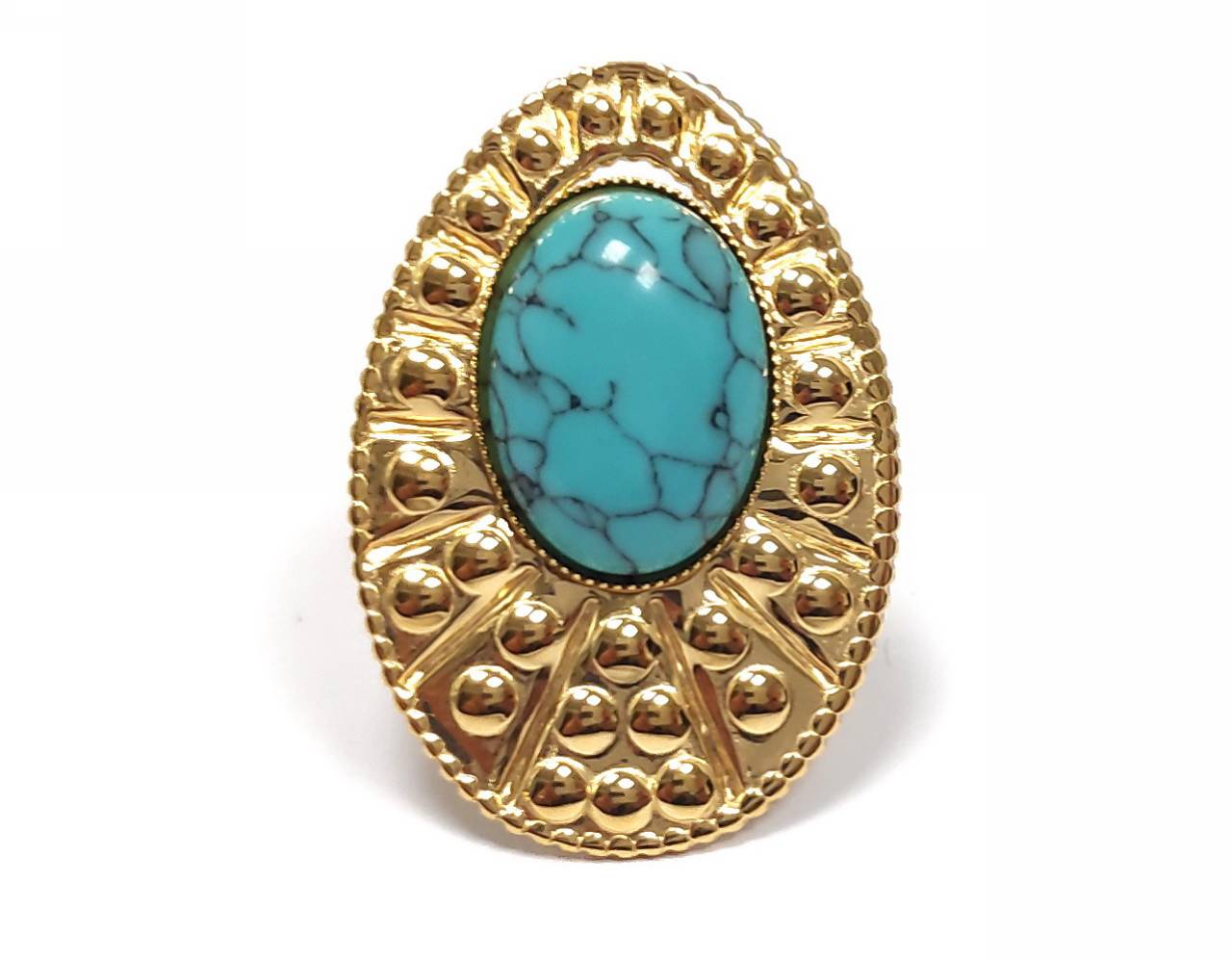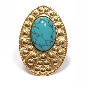 Δαχτυλίδι Πέτρα 316L, με τυρκουάζ σε χρώμα Χρυσαφί