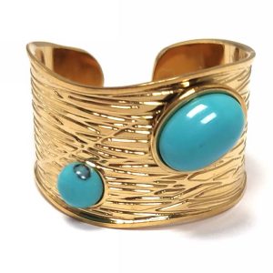 Δαχτυλίδι Πέτρα 316L, με τυρκουάζ σε χρώμα Χρυσαφί