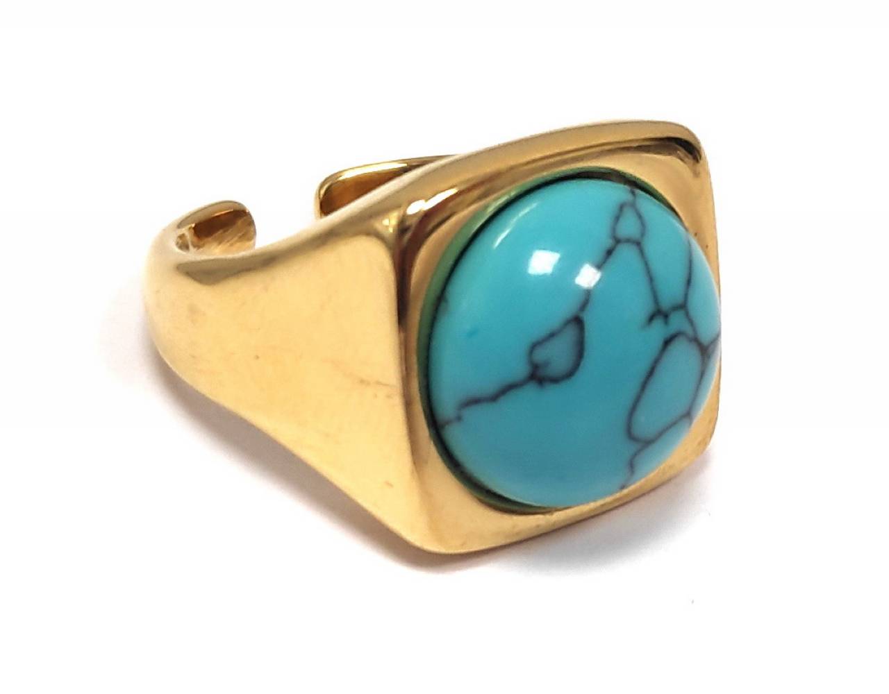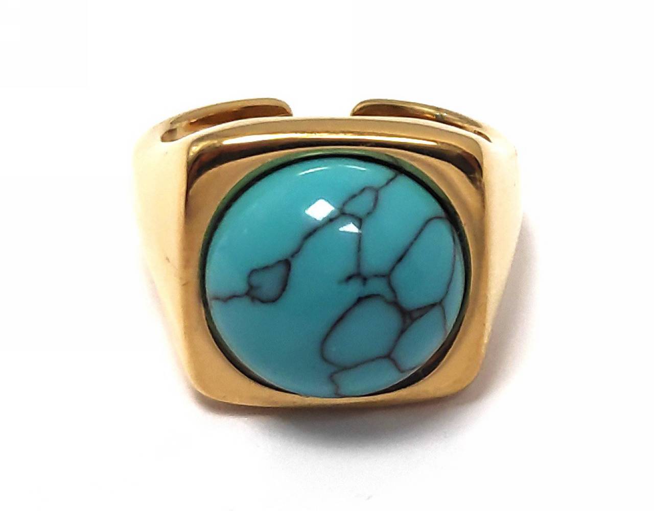 Δαχτυλίδι Πέτρα 316L, με τυρκουάζ σε χρώμα Χρυσαφί