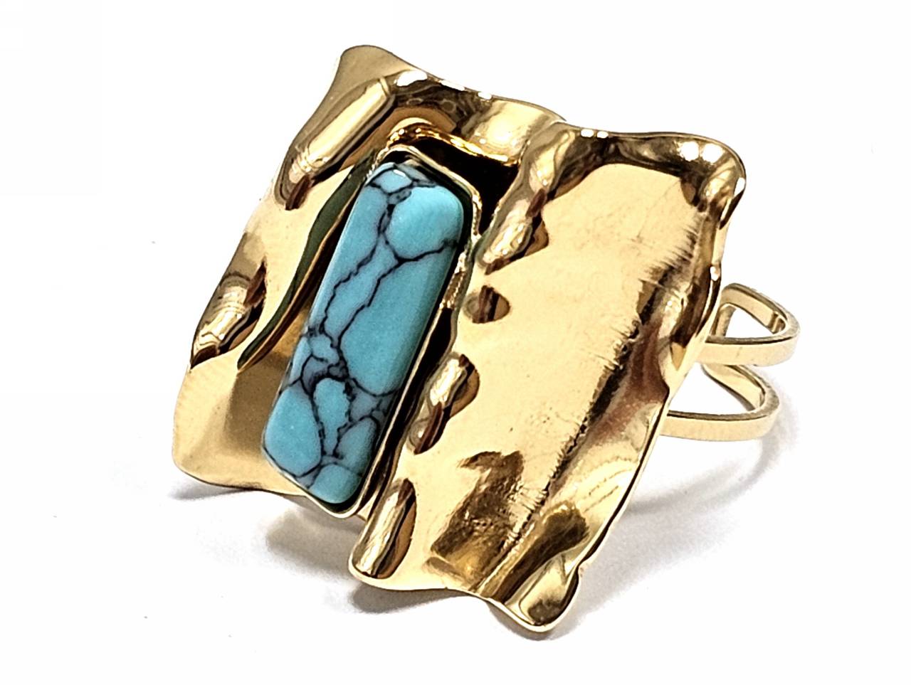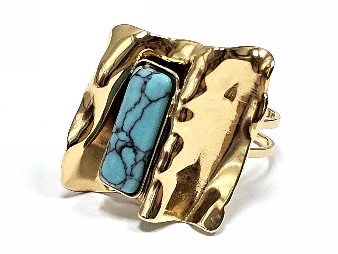 Δαχτυλίδι Πέτρα 316L, με τυρκουάζ σε χρώμα Χρυσαφί