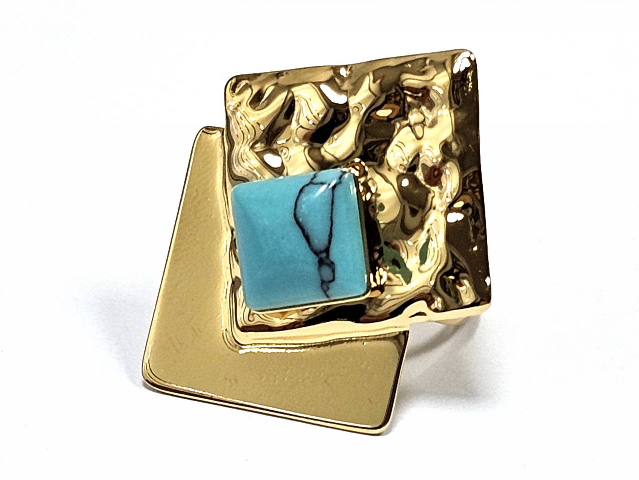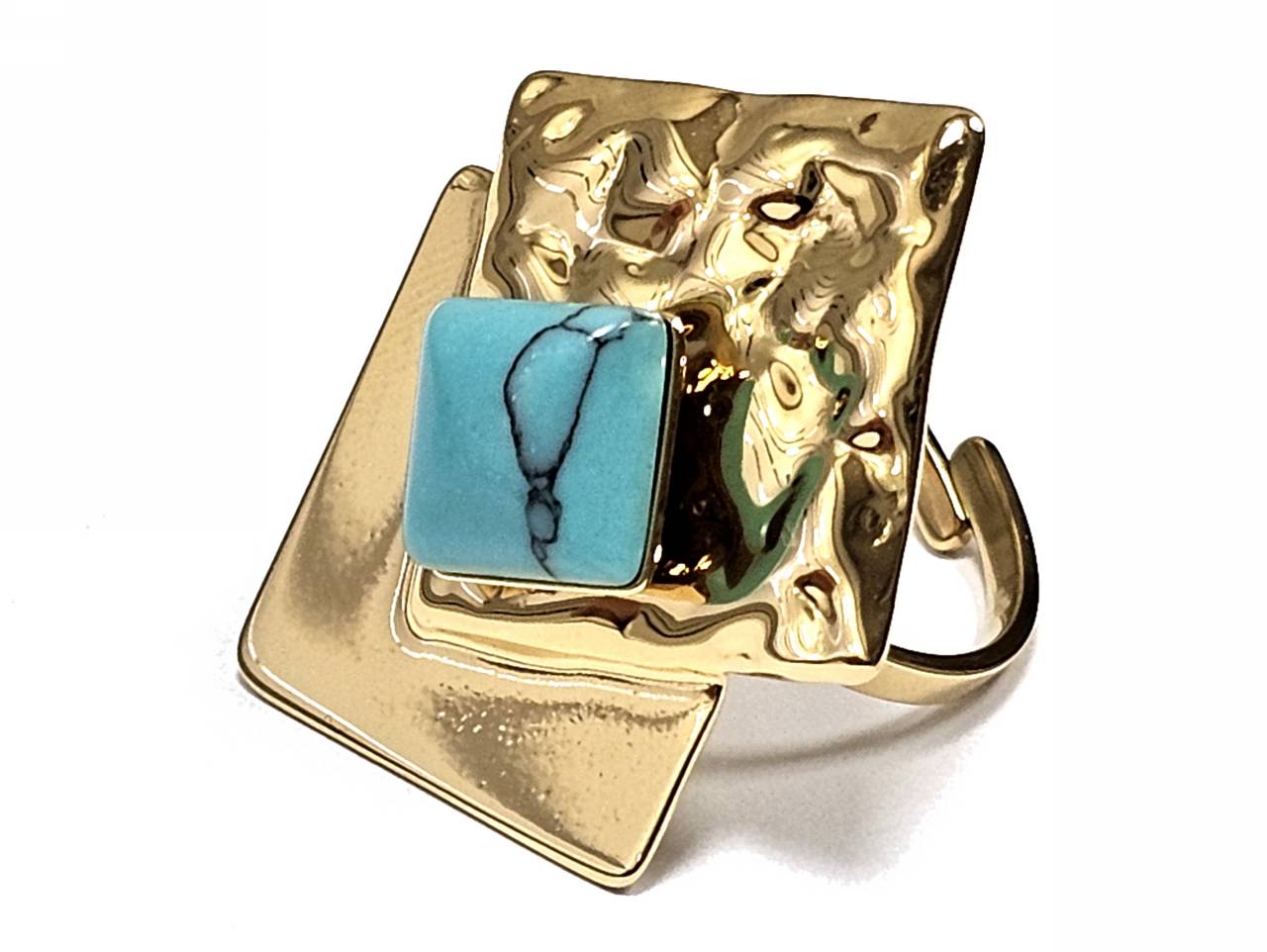 Δαχτυλίδι Πέτρα 316L, με τυρκουάζ σε χρώμα Χρυσαφί