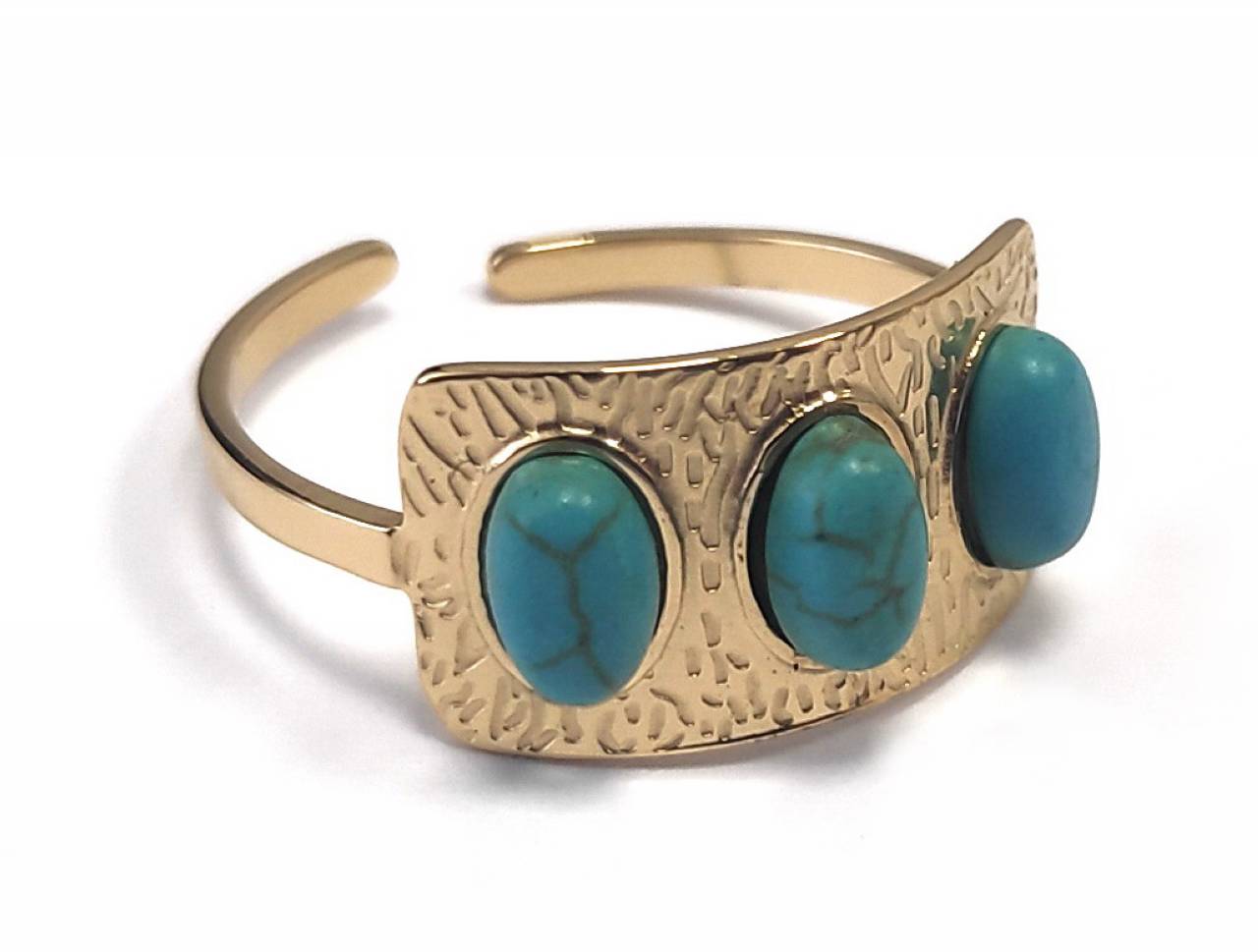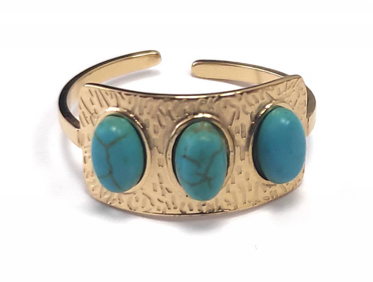Δαχτυλίδι Πέτρα 316L, με τυρκουάζ σε χρώμα Χρυσαφί