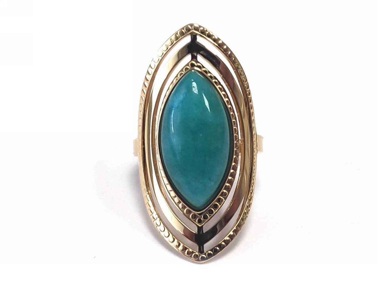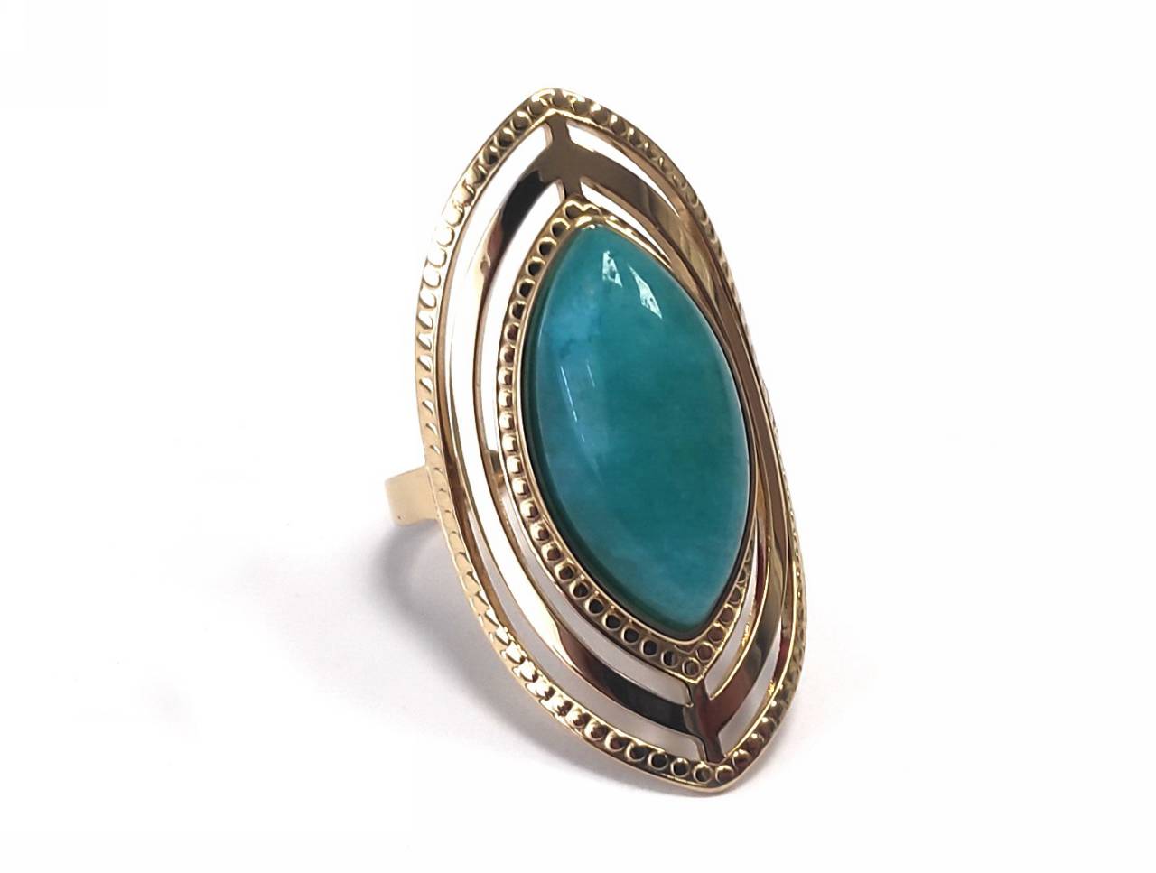 Δαχτυλίδι Πέτρα 316L, με τυρκουάζ σε χρώμα Χρυσαφί