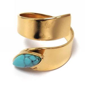 Δαχτυλίδι Πέτρα 316L, με τυρκουάζ σε χρώμα Χρυσαφί