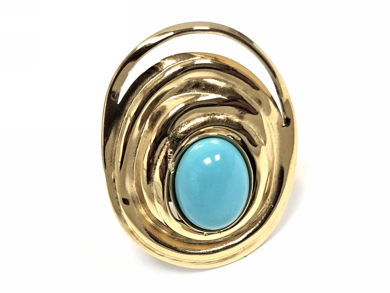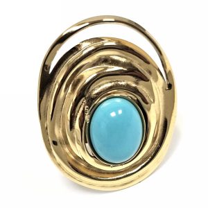 Δαχτυλίδι Πέτρα ατσάλι 316L, με τυρκουάζ σε χρώμα Χρυσαφί