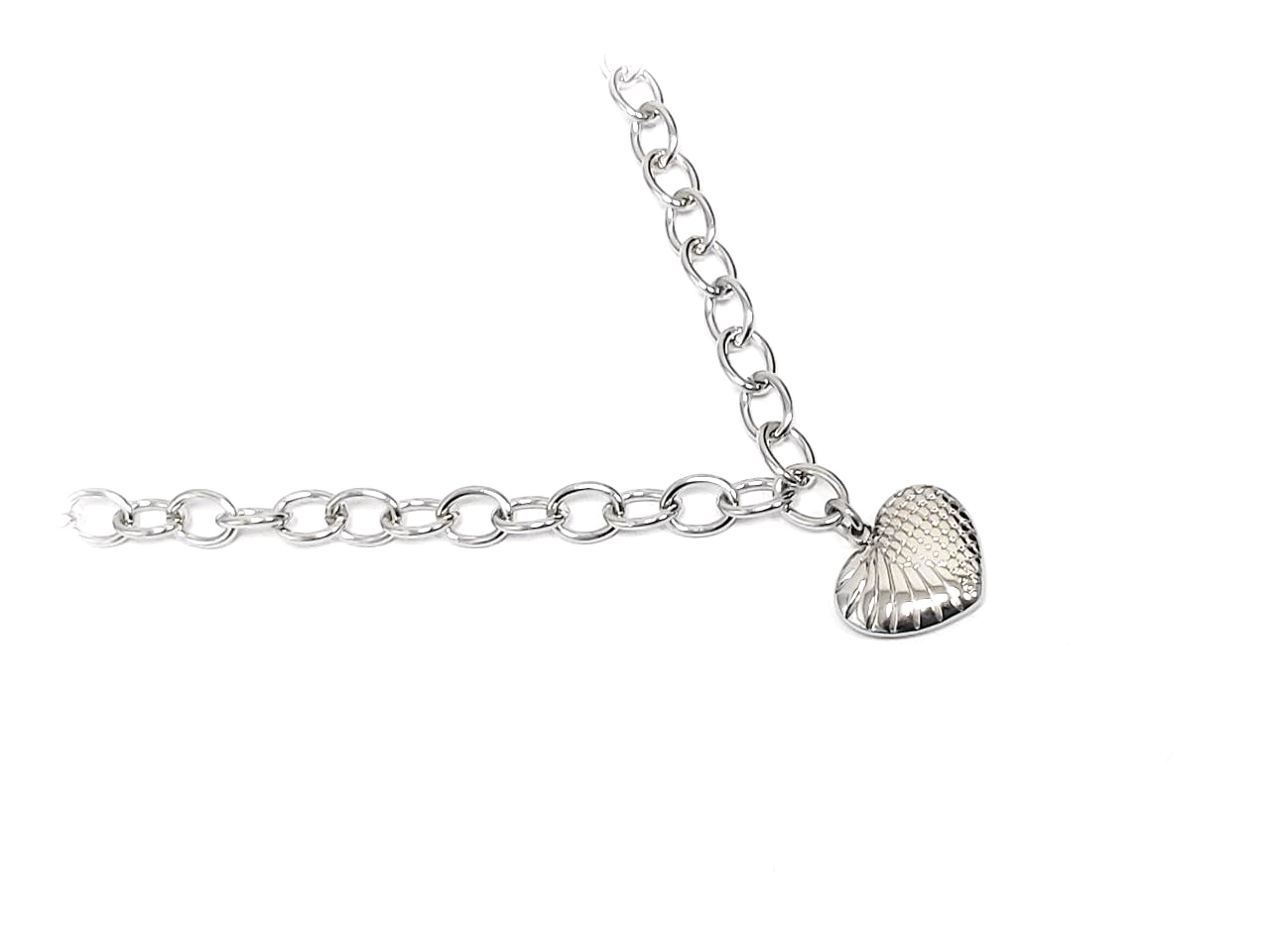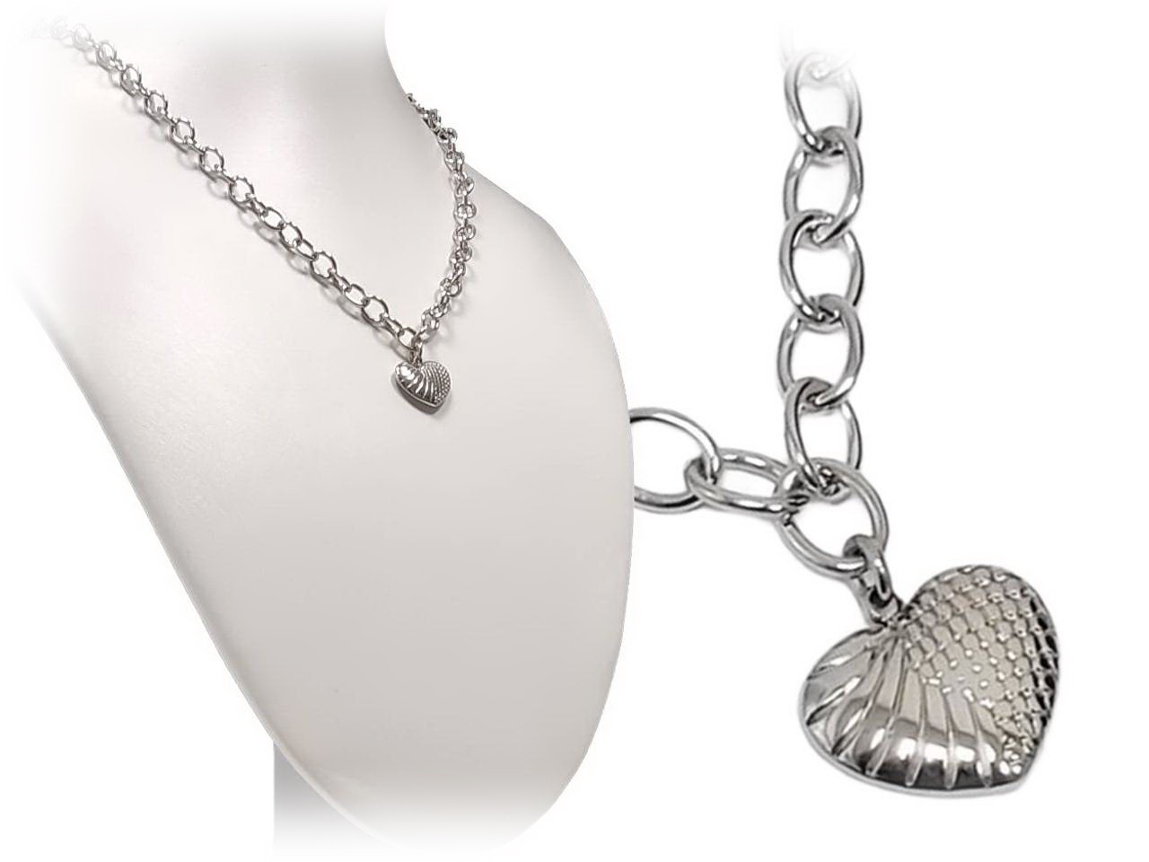 Κολιέ Ατσάλι 316L, αλυσίδα με καρδιά σε χρώμα Ασημί, Μήκος 45cm