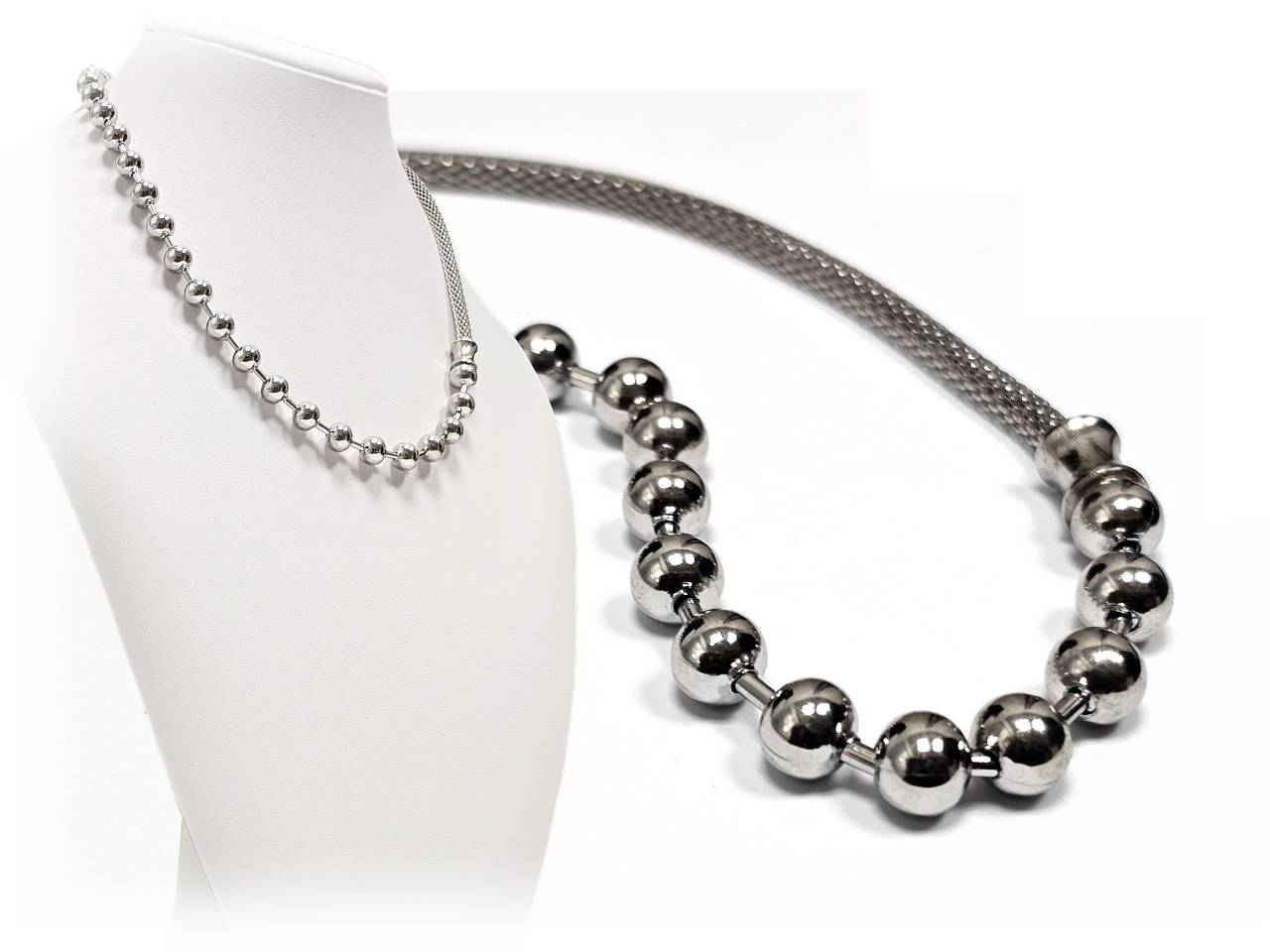 Κολιέ Ατσάλι 316L, με αλυσίδα snake και μπίλια σε χρώμα Ασημί