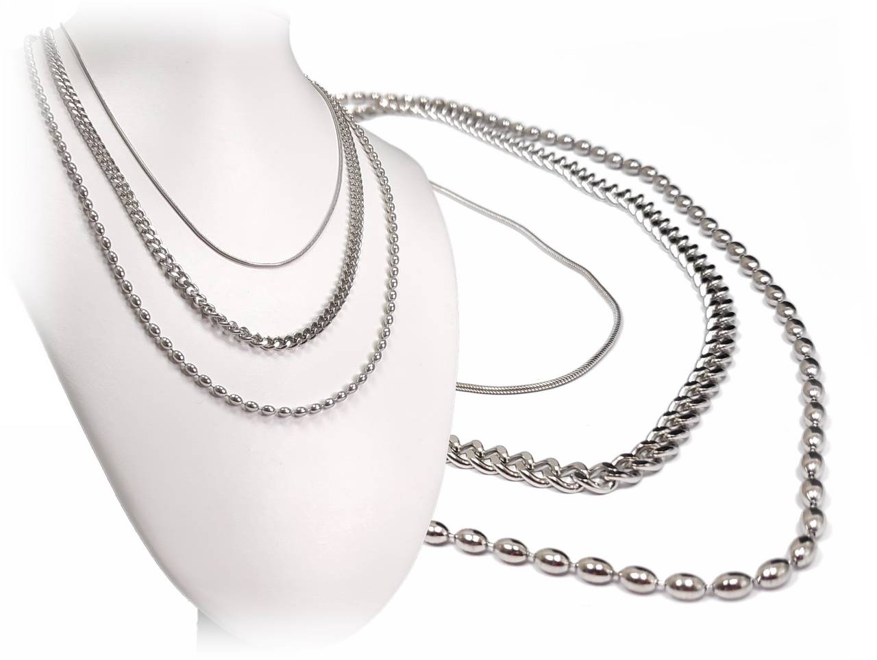 Κολιέ Ατσάλι 316L, τριπλή αλυσίδα σε χρώμα Ασημί, Μήκος 50cm