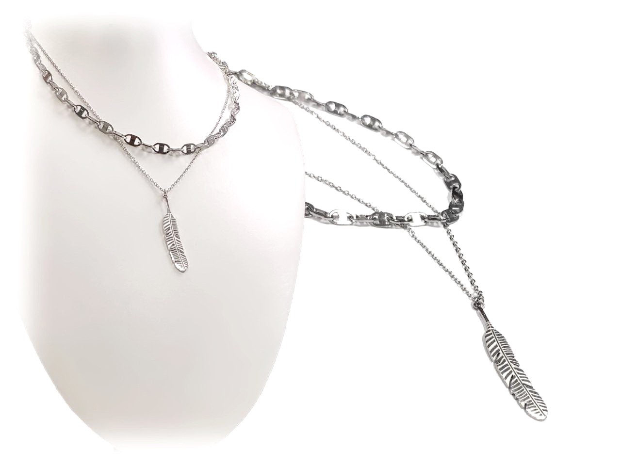 Κολιέ Ατσάλι 304, διπλή αλυσίδα με φτερό σε χρώμα Ασημί, Μήκος 40cm