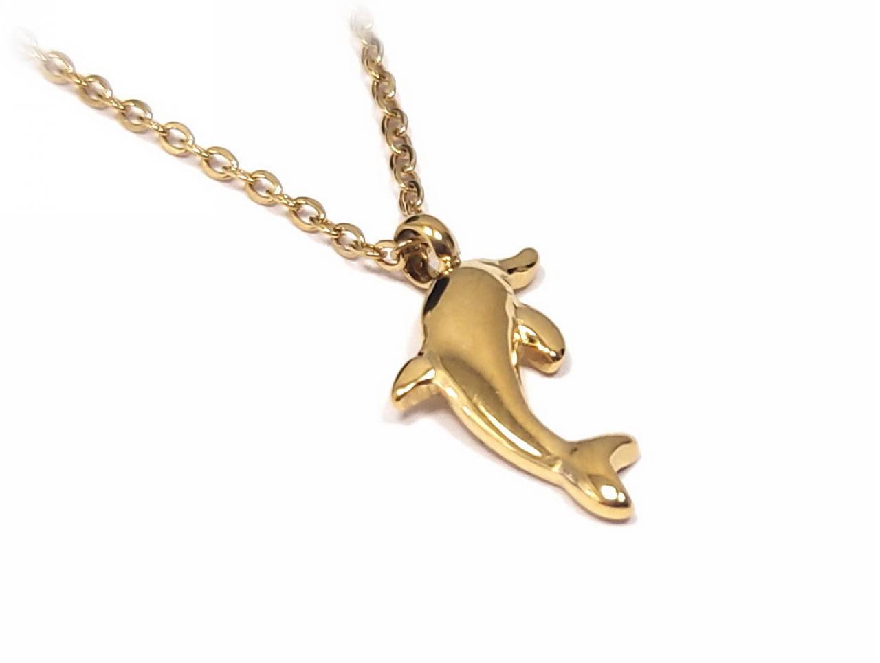 Κολιέ Ατσάλι 316L, αλυσίδα με δελφίνι σε χρώμα Χρυσαφί