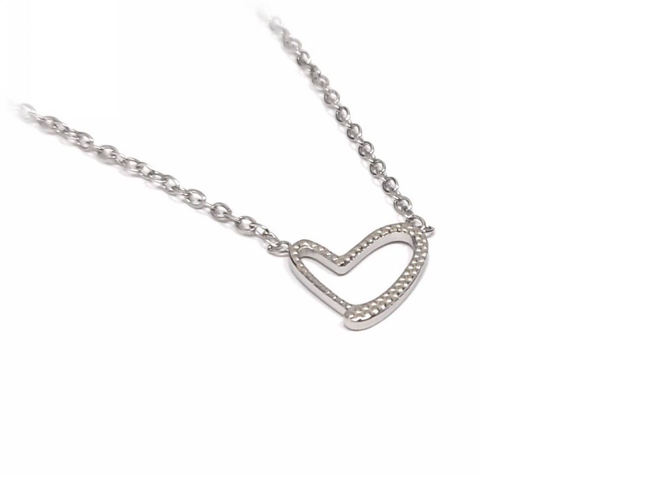 Κολιέ Ατσάλι 316L, αλυσίδα με καρδιά σε χρώμα Ασημί
