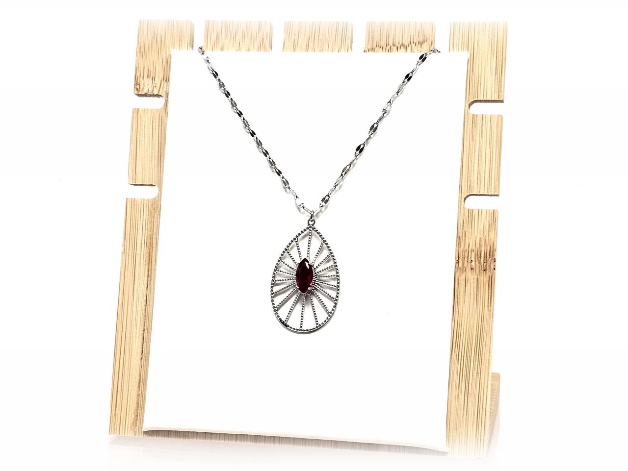 Κολιέ Ατσάλι 316L, αλυσίδα με κρυσταλλάκι σε χρώμα Ασημί