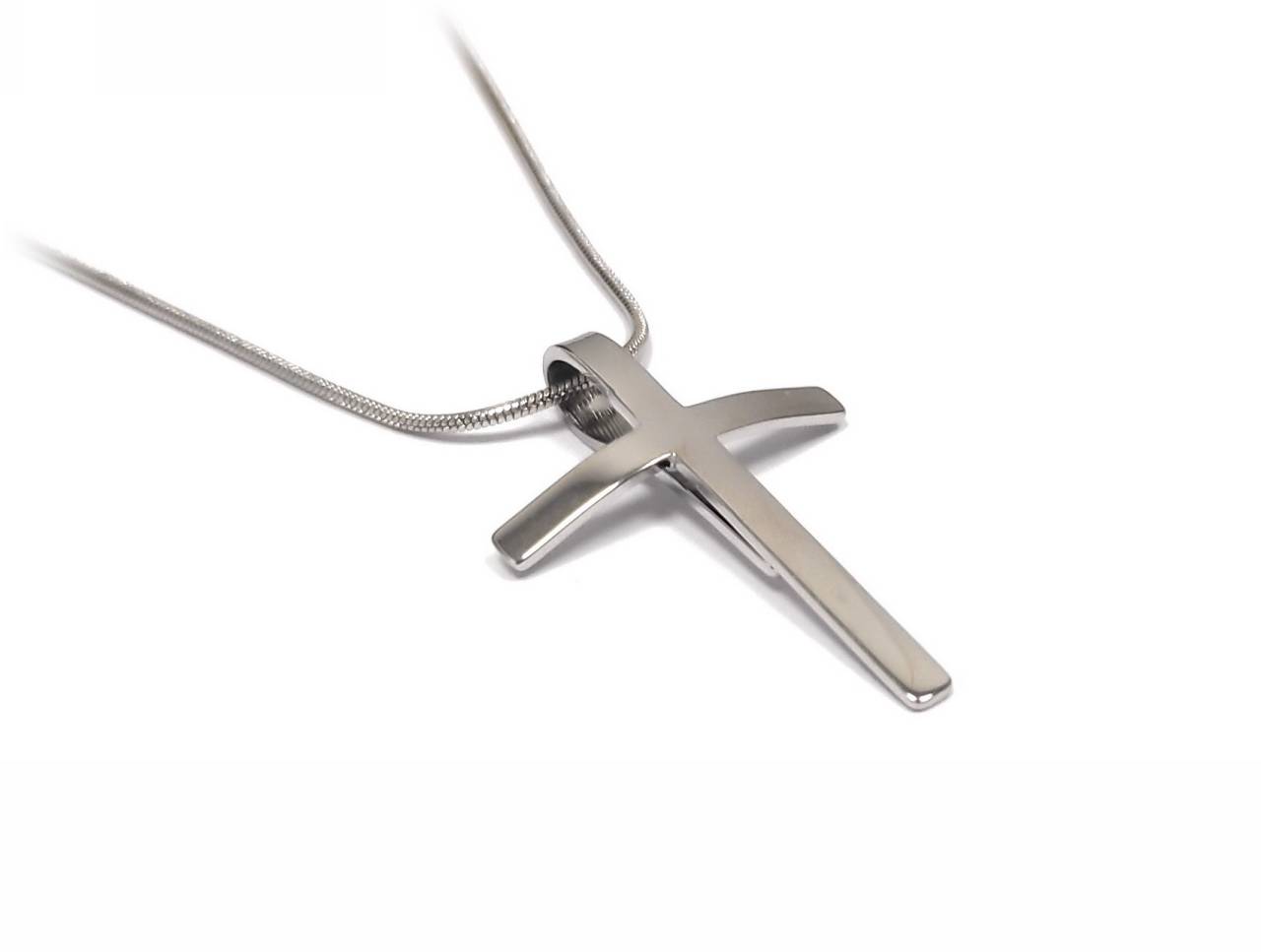 Κολιέ Ατσάλι 316L, αλυσίδα με σταυρό σε χρώμα Ασημί