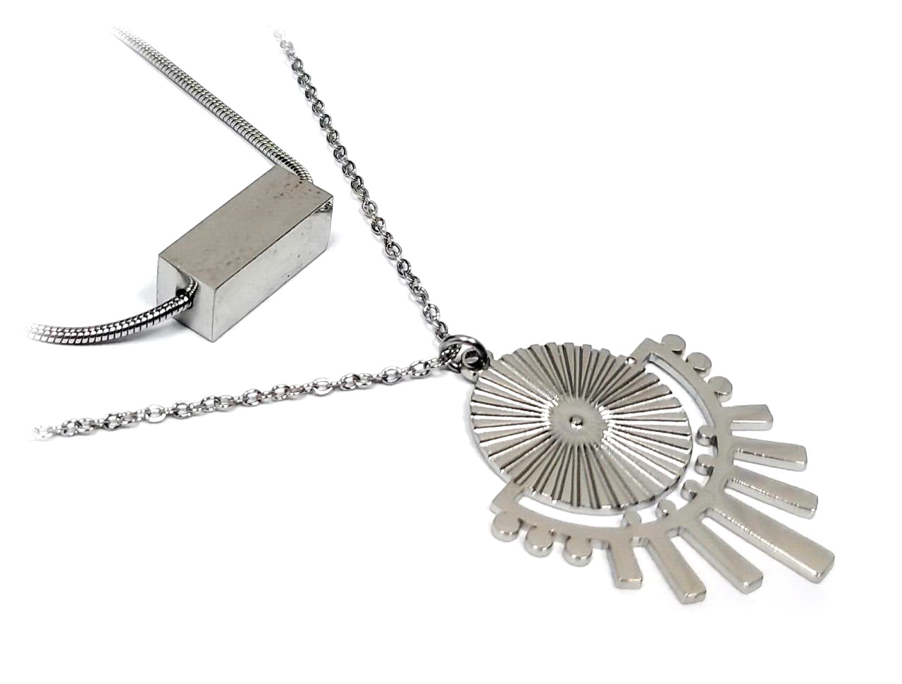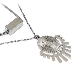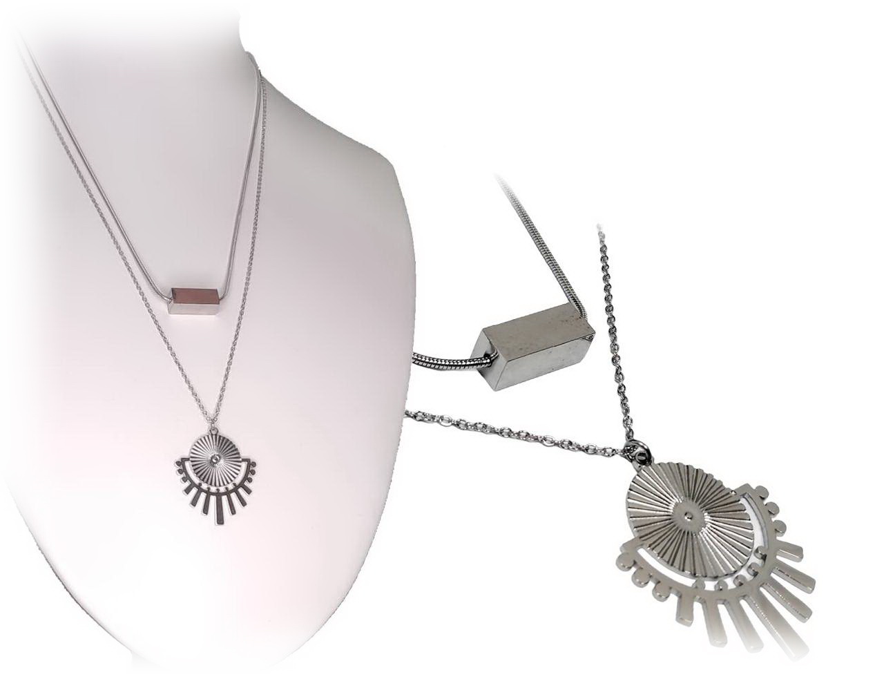 Κολιέ Ατσάλι 316L, διπλή αλυσίδα σε χρώμα Ασημί, Μήκος 50cm