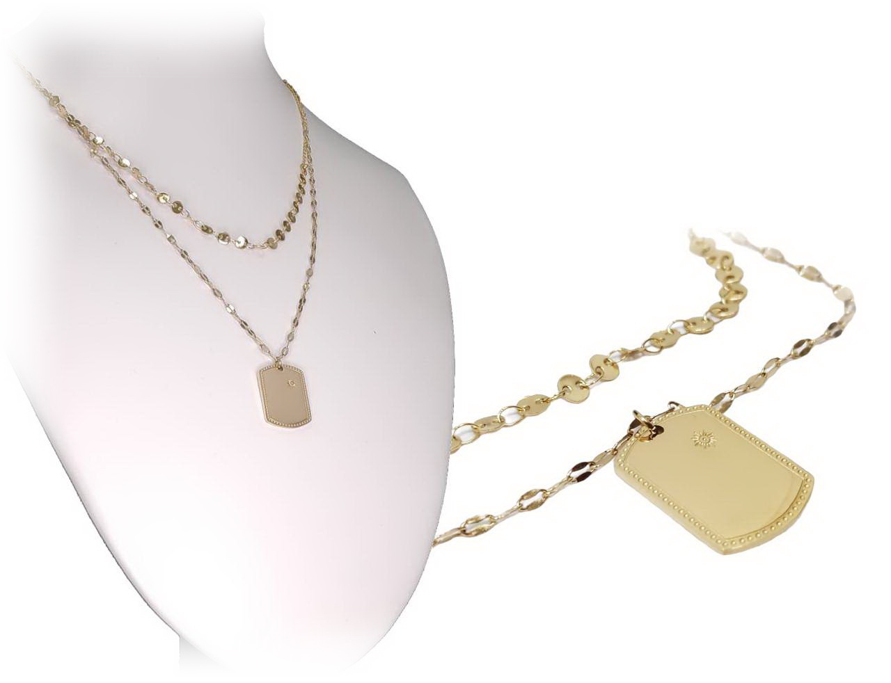Κολιέ Ατσάλι 316L, διπλή αλυσίδα σε χρώμα Χρυσαφί, Μήκος 50cm
