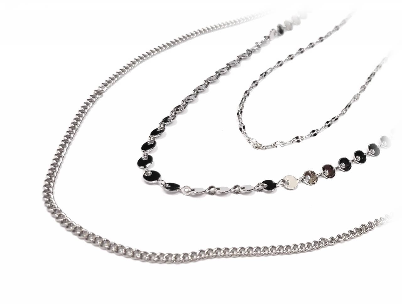 Κολιέ Ατσάλι 316L, τριπλή αλυσίδα σε χρώμα Ασημί, Μήκος 50cm